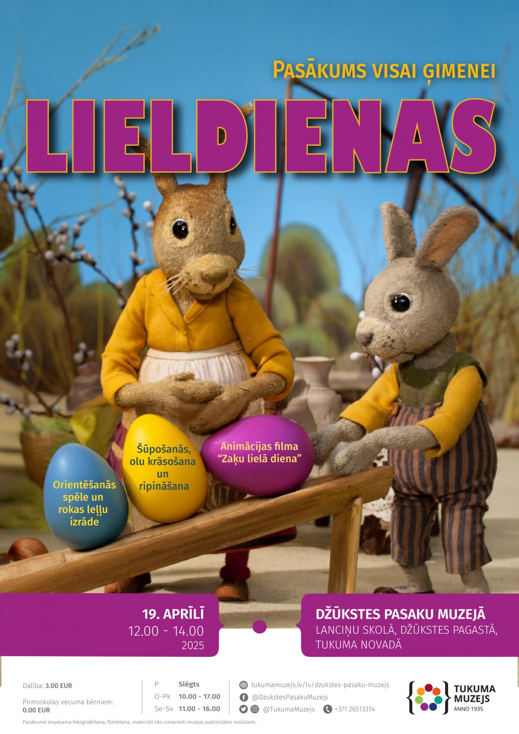 Džūkstes Pasaku muzeja dārzā būs pieejama aizraujoša orientēšanās spēle “Pa zaķa pēdām”, kurā būs jāseko norādēm un jāatklāj, kādi ir zaķa noslēpumi un kur viņš tos paslēpis. Neizpaliks arī šūpošanās – kā jau Lieldienu tradīcijās ierasts, lai augtu stipri un veseli, nekostu odi un dunduri, lai visu gadu nenāktu miegs – jāšūpojas no visas sirds.