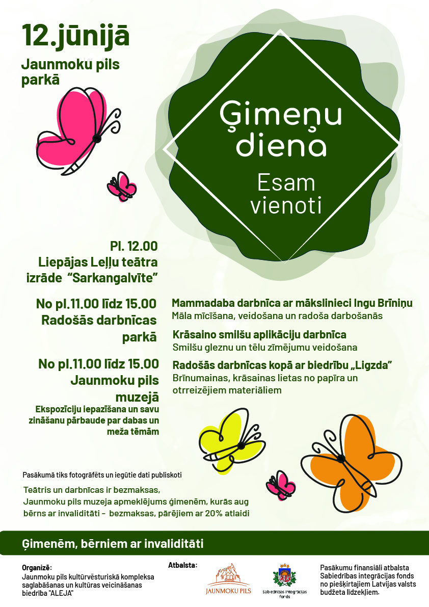 Teātris un dalība darbnīcās būs bezmaksas. Jaunmoku pils muzeja apmeklējums ģimenēm, kurā aug bērns ar invaliditāti, būs bezmaksas. Pārējām ģimenēm muzeja ekspozīciju apskate par samazinātu ieejas maksu.