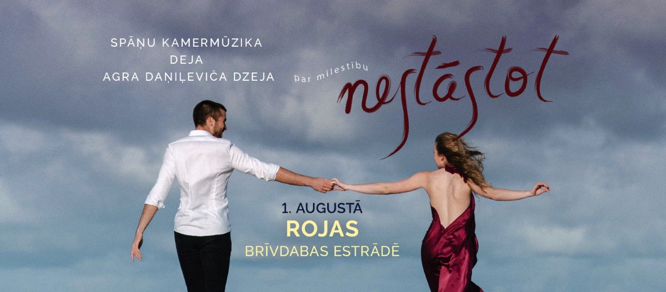 Pašā vasaras viducī, zvaigžotā augusta naktī Rojas brīvdabas estrādē vēl reizi izskanēs skaistais stāsts par mīlestību “NESTĀSTOT”, kas aizvadītajā gadā guva nedalītu publikas un kritiķu atzinību. Solistes Aleksandras ŠPICBERGAS spožais un pārsteidzošais sniegums gan kā dziedātājai, gan dejotājai, tika novērtēts ar LSM balvu “Kilograms kultūras”.
