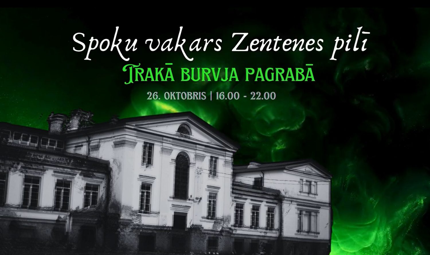 Zentenes pils un Zentenes kultūras nams 26.oktobra vakarā aicina uz Spoku vakaru Zentenē. Te šogad no plkst. 16.00 līdz 22.00 Zenteni būs pārņēmušas burvestības, raganas un burvji. Te apmeklētājus iepriecinās ar baisu iespaidu un sajūtu taku “Trakā burvja pagrabs”, grotā jeb “Melnajā caurumā” ar šausmu stāstus no burvja atstāto vēstuļu lasīšanu. Ikviens būs aicināts arī apgūt burvjiem vajadzīgās prasmes dažādās spocīgas burvju darbnīcās – ķirbju grebšanu, zīlēšanu stikla bumbā, burvju dziru gatavošanu un citas. Spoku vakarā atlidos arī īsts burvju mākslinieks – Valdemārs Weiss. Priekšnesums notiks Zentenes kultūras namā un būs tikai 30 minūšu garš. Pasākuma vakara kulminācija un pārsteigums ar gaismu gleznām sagaidāms pils telpās un parkā.