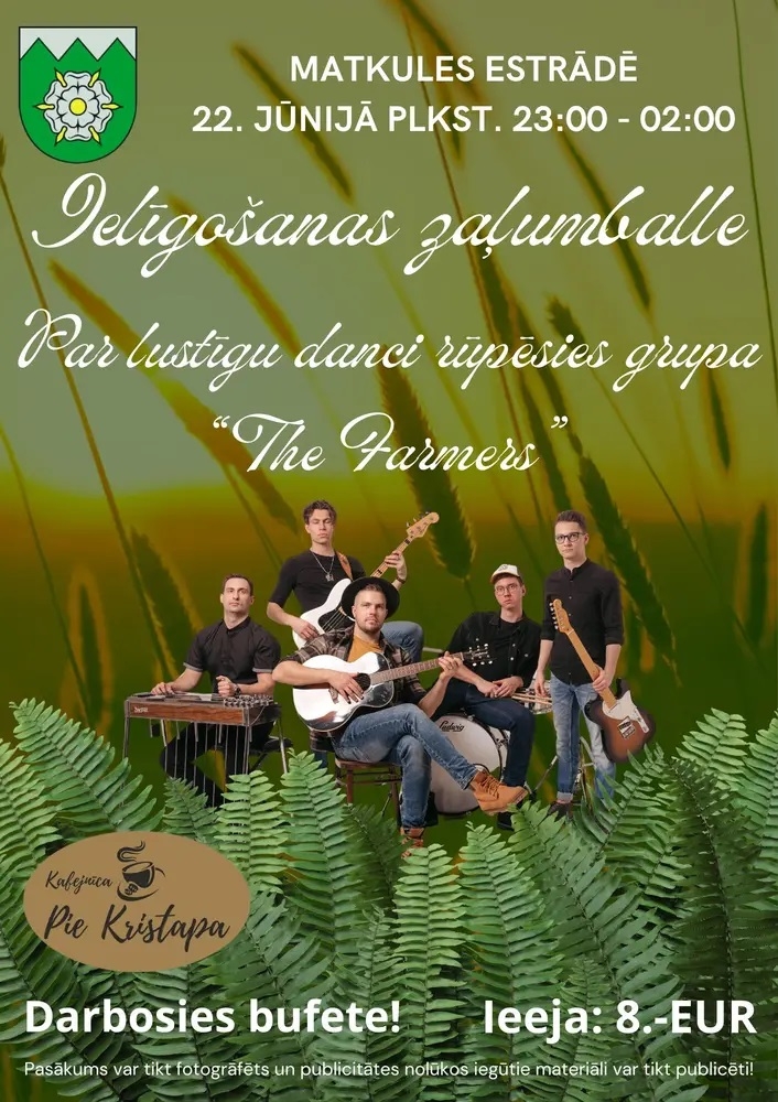 1. jūnijā no plkst. 23.00 līdz pat 03:00 Matkules estrādē būs ielīgošanas zaļumballe ar grupu “The Farmers”. Ieejas maksa 8 EUR.