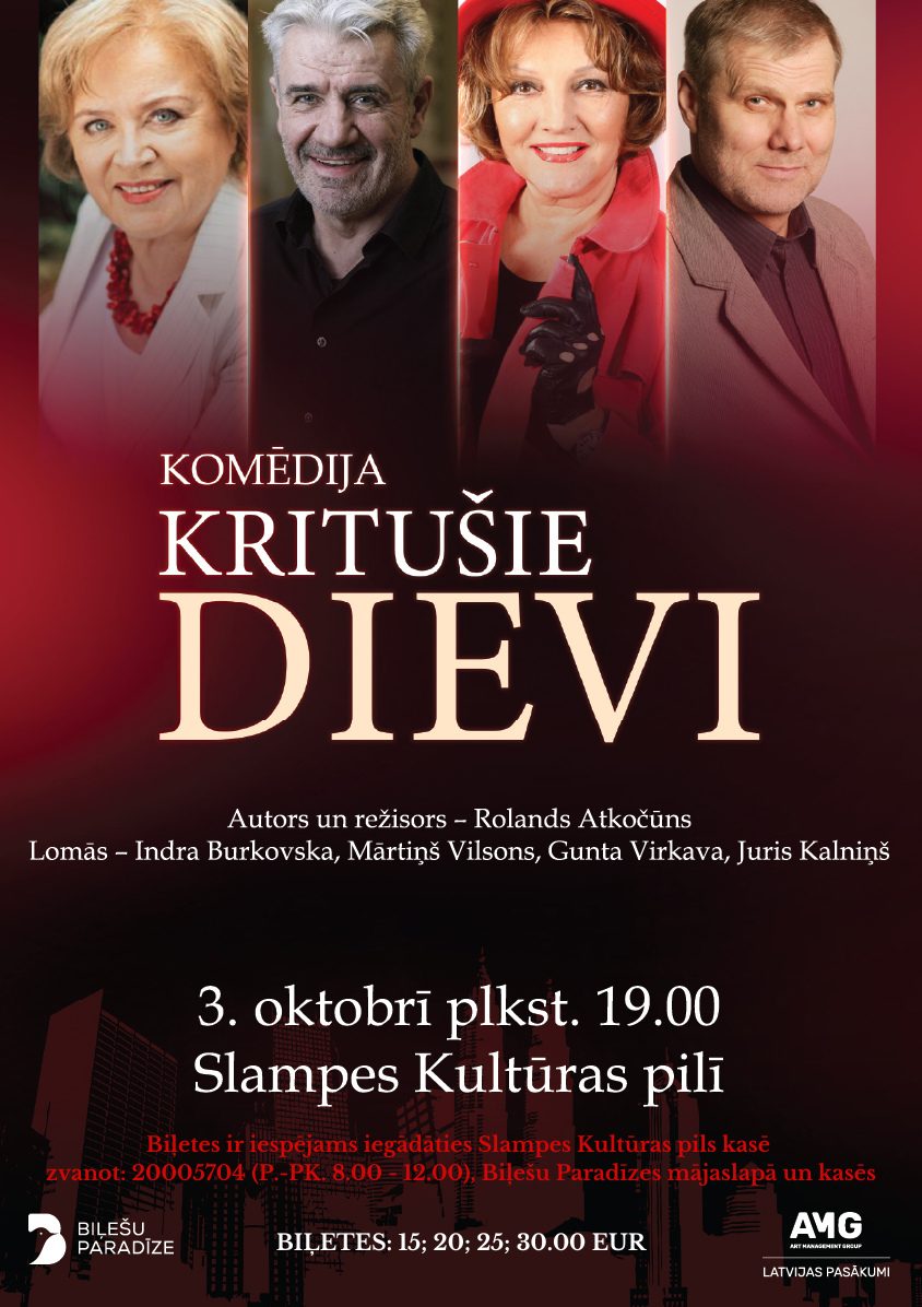 Spraiga un komiski absurda komēdija, kurā dzīves situācijas atpazīs ikviens skatītājs. Koši tēli, neparedzami notikumi un dzirkstošs humors sola īstu viegluma devu pēc ikdienas rūpēm. Vakars, kas piepildīsies ar smiekliem un pārsteigumiem. Norises vieta: Tukuma pilsētas Kultūras nams, Lielā iela 1, Tukums. Norises laiks: 5.10.2025 plkst. 18:00.  Vairāk informācijas: 28344637, www.tukumskn.lv