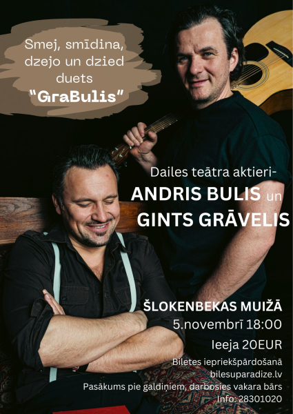Savukārt Šlokenbekas muižā 5. novembrī 18.00 būs iespēja gan izsmieties, gan arī dziedāt no sirds kopā ar Dailes teātra aktieriem Andri Buli un Gintu Grāveli. Pasākums notiks pie galdiņiem.