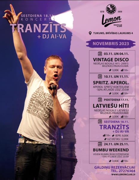 - un 4. novembrī Tukuma klubā «Lemon Club» būs Vintage disco nedēļas nogale. Bet «Disco Mojito» piektdien dejas, sestdien – dzīvā mūzika kopā ar grupu «TukStreet Boys» jeb «Tukuma ielu zēniem».