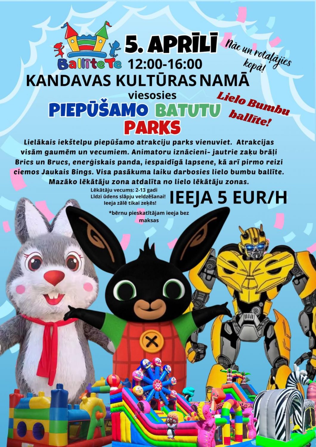 Šis pasākums piedāvās bērniem neaizmirstamu piedzīvojumu lielākajā iekštelpu piepūšamo atrakciju parkā. Mazos apmeklētājus sagaida dažādas aktivitātes, ieskaitot jautros animatorus, lielo bumbu ballīti un iemīļotus tēlus. Atrakcijas pielāgotas dažādiem vecumiem, nodrošinot aizraujošu un drošu rotaļāšanos visiem bērniem.