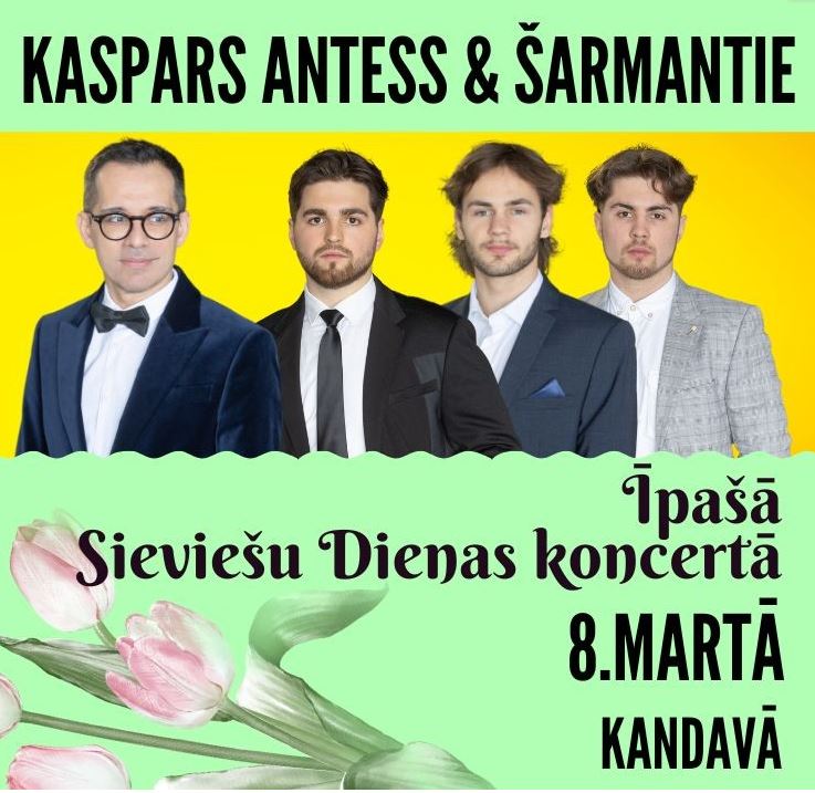 Kandavas Kultūras namā 8.marta plkst. 19:00 izskanēs Kaspara Antesa populārākās autordziesmas, kā arī latviešu un čigānu estrādes mīlas dziesmas. Muzikālo atmosfēru radīs arī Roberts Nejs (taustiņinstrumenti), Eduards Bariss (basģitāra) un Oskars Nejs (bungas). Šis būs vakars, kurā mūzika sildīs sirdis un mīlestība ieaudīsies katrā melodijā. bilesuparadize.lv Adrese: Kandavas kultūras nams, Lielā iela 28, Kandava, Tukuma novads. Vairāk informācijas: 25771108, www.kandavaskulturasnams.lv