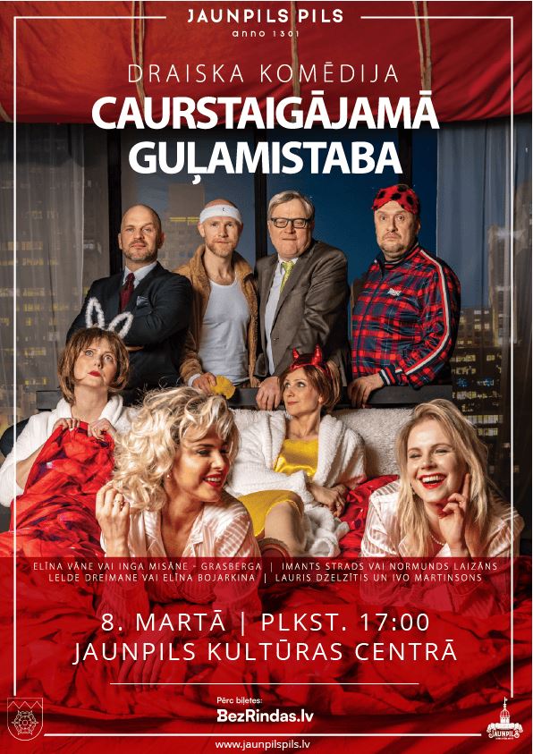 Jaunpils pilī 8.martā plkst. 17:00 aizraujoša attiecību komēdija “Caurstaigājamā guļamistaba”. Režisors Imants Strads piedāvā smieklu pilnu izrādi, kurā vieni meli noved pie nākamajiem, līdz viss iegriežas neapturamā pārpratumu virpulī. Spraigi dialogi, negaidīti pavērsieni un asprātīgs sižets garantē lielisku vakaru. Nāciet baudīt teātri, kas uzjautrinās un iepriecinās! Biļetes – bezrindas.lv un Jaunpils pils kultūras centrā. Adrese: „Pils“, Jaunpils, Jaunpils pagasts, Tukuma novads. Vairāk informācijas: 26101458, www.jaunpilspils.lv