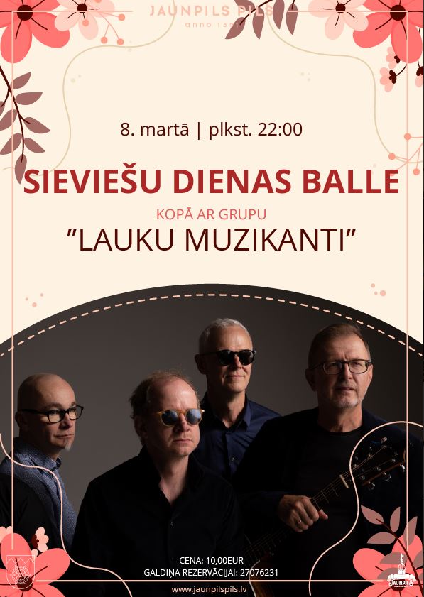 Sieviešu dienas balle Jaunpils pilī kopā ar “Lauku muzikantiem”! Tieši 8.martā no plkst. 22:00 aicinām uz lustīgu un neaizmirstamu balli kopā ar “Lauku muzikantiem”! Dejas, jautra atmosfēra un lieliska mūzika garantēta! Ieejas maksa 10 EUR, un, lai svētku vakars būtu vēl omulīgāks, iesakām rezervēt galdiņus laicīgi. Aicinām ņemt līdzi arī savus groziņus, lai baudītu vakaru ar gardām uzkodām, taču darbosies arī pils kroga kafejnīca, kur varēs baudīt uzkodas un dzērienus. Svinēsim Sieviešu dienu skaisti un no sirds! Adrese: „Pils“, Jaunpils, Jaunpils pagasts, Tukuma novads. Vairāk informācijas: 26101458, www.jaunpilspils.lv