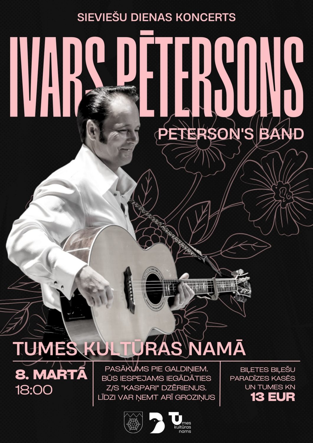 8.marta plkst. 18:00 Tumes Kultūras namā aicinām uz Sieviešu dienas koncertu kopā ar PETERSONS BAND! Divās daļās izskanēs enerģiska un dzīvespriecīga mūzika, kas neļaus palikt sēžot – kājas pašas vedīs uz deju grīdu. Vakaru baudīsim pie galdiņiem, un ikviens aicināts ņemt līdzi uzkodas, kā arī pasākuma laikā būs iespēja baudīt Z/S “Kaspari” dzērienus. Dāmas, neaizmirstiet ielūgt arī stiprā dzimuma pārstāvjus – būs jautri un muzikāli koši! Adrese: Pasta iela 1A, Tume, Tumes pagasts, Tukuma novads. Vairāk informācijas: 26332401
