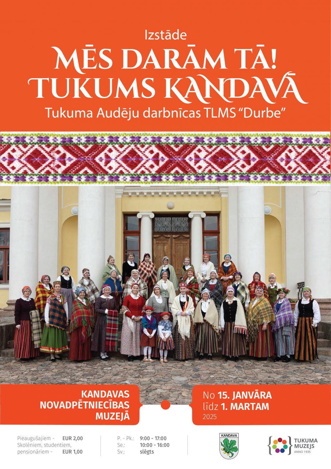 Ieeja ar muzeja biļeti. Izstāde no 2024. gada 14. decembra. Informācija: 25622267, audejudarbnica@tukumamuzejs.lv. Adrese: Tidaholmas iela 3, Tukums. www.tukumamuzejs.lv
