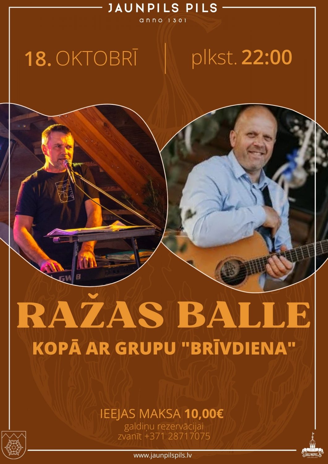 Ražas balle aicinās nosvinēt labības un rudens velšu novākšanu kopā ar mūziku un dejām. Grupas “Brīvdiena” priekšnesumi piepildīs vakaru ar enerģiju un prieku, radot neaizmirstamu kopā būšanas pieredzi. Balles atmosfēra ļaus atslēgties no ikdienas un iedziļināties rudens burvībā. Norises vieta: Jaunpils pils, Jaunpils, Jaunpils pagasts, Tukuma novads. Norises laiks: 18.10.2025 plkst. 22:00. Ieejas maksa: 10 EUR. Lai rezervētu galdiņu, lūgums zvanīt. Vairāk informācijas: 28717075, www.jaunpilspils.lv