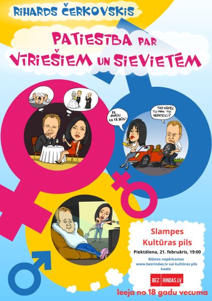 Savukārt Slampes Kultūras pilī gaidāms asprātīgs un dzīvē atpazīstams Stand-Up vakars “Patiesība par vīriešiem un sievietēm”. Vai tiešām vīrieši nāk no Marsa un sievietes no Venēras? Kāpēc mēs tik bieži pārprotam viens otru? Ar humoru un ironiju tiks meklētas atbildes uz šiem jautājumiem, atklājot situācijas, kas pazīstamas ikvienam. Pasākuma sākums plkst. 19:00. Biļetes iegādājamas vietnē bezrindas.lv šeit. Aicinām uz vakaru, kurā smiekli garantēti! Adrese: “Kultūras pils”, Slampe, Slampes pagasts, Tukuma novads. Vairāk informācijas: 20005704