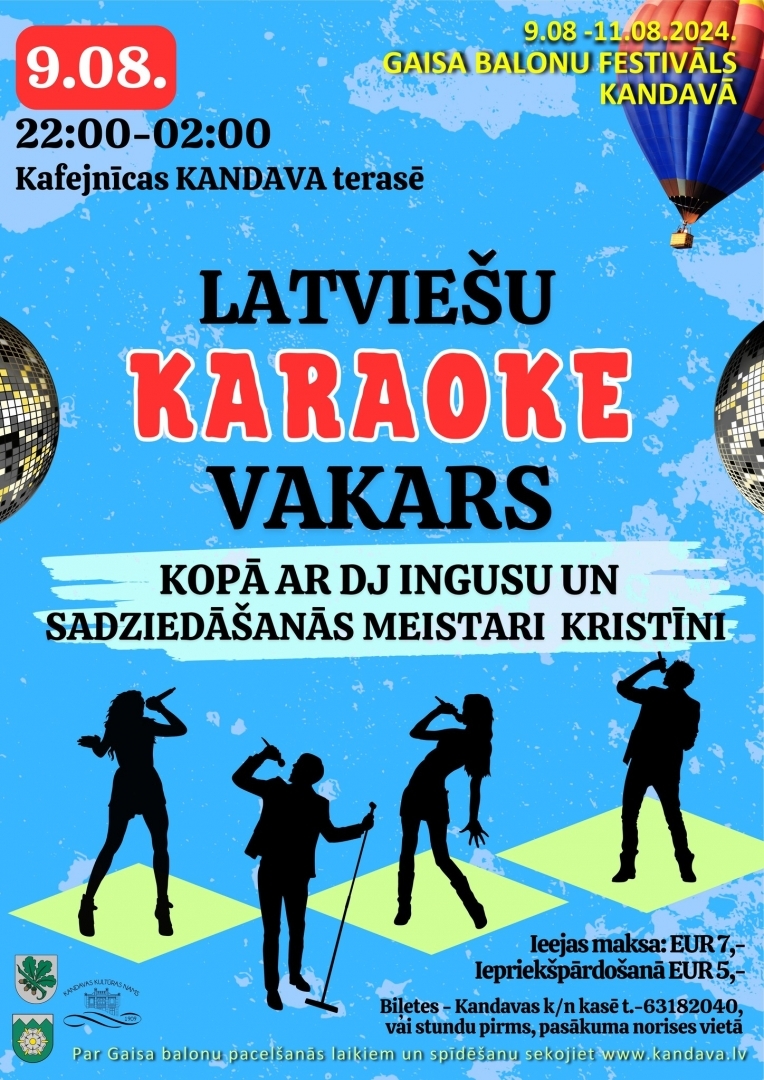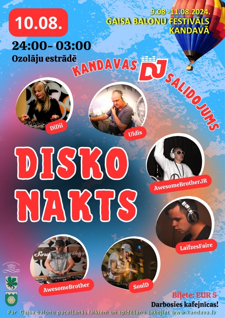 Kā šobrīd tiek ziņots, ņemot vērā lidošanai ne tik tīkamos laikapstākļus, Kandavas ikgadējā Gaisa balonu festivāla ietvaros tieši gaisa balonu pacelšanās tiek pārcelta. Taču svētki notiks un notiks ar pilnu jaudu, sākot jau no šodienas, kad 9. augustā 17.00 Kandavas muzeja pagalmā atklās Mazākumtautību festivālu, 22.00 – tie turpināsies ar karaoke vakaru viesnīcā «Kandava». Nākamajā rītā, 10. augustā, censoņi Kandavas lauksaimniecības tehnikuma stadionā pulcēsies no 10.00, bet agrā pēcpusdienā – 14.00, ikviens būs gaidīts pilsētas promenādē, kur būs ballīte bērniem. Turpināsies Mazākumtautību festivāls. Bet no 20.00 «Ozolāju» estrādē būs sirdsdziesmas Kandavā, kam sekos disko nakts.