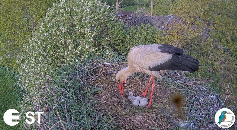 Stārķu ligzdā Tukuma pusē nedēļas nogalē izšķīlušies pirmie mazuļi/VIDEO/