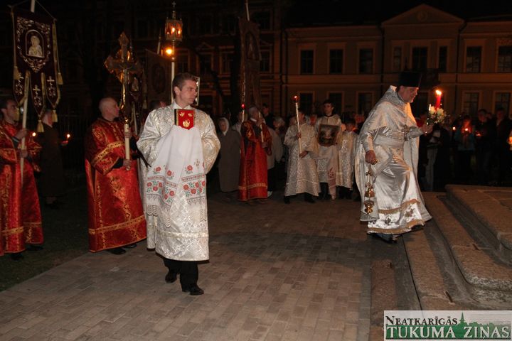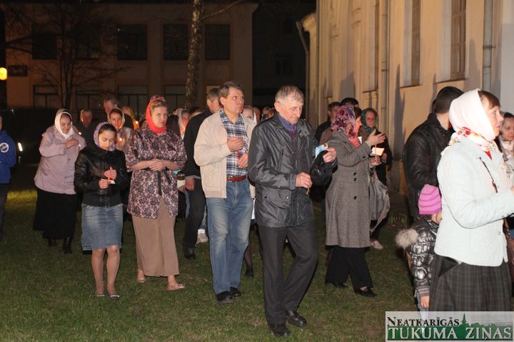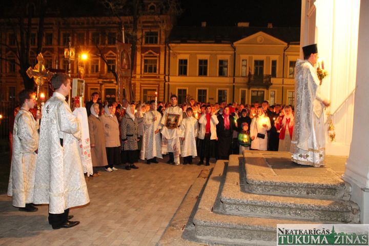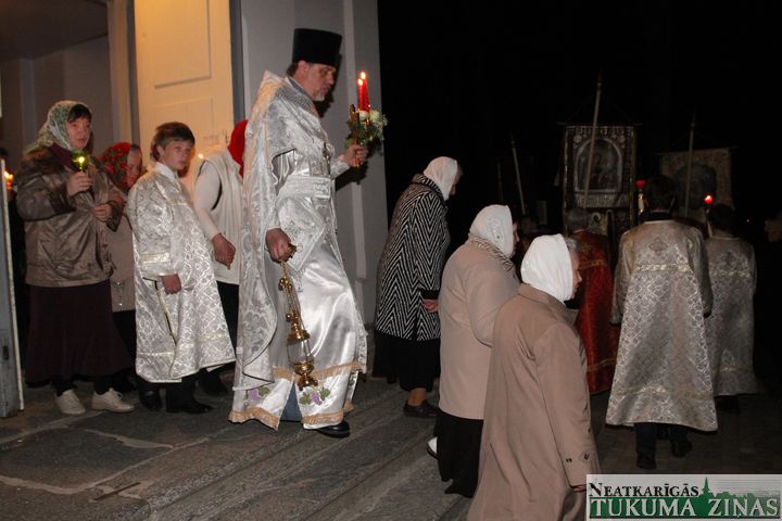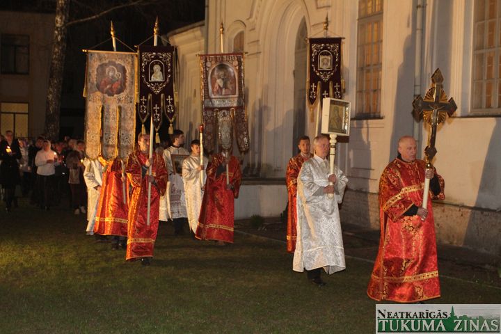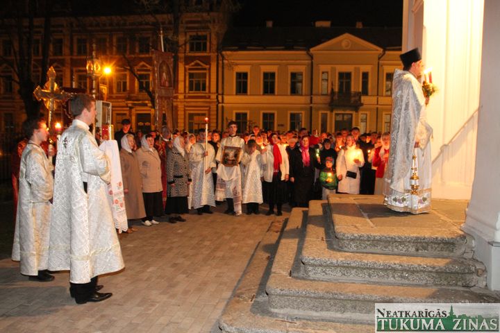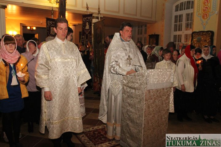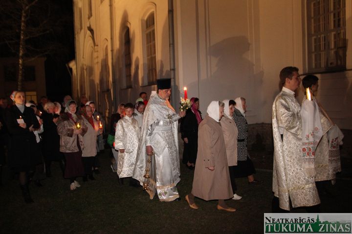 Jēzus Kristus augšāmcelšanos pareizticīgie svin šodien – 5. maijā. Svētā Nikolaja Tukuma draudze Kristus augšāmcelšanās brīdi pusnaktī sagaidīja Dievnamā. Dievkalpojumu vadīja draudzes mācītājs Tēvs Joans. Brīdī, kad Pestītājs ir augšām cēlies un baznīcēni gāja svētceļojumā apkārt Dievnamam, klāt bija daudz ļaužu. Aizdegtām svecēm rokās, trīsreiz ejot apkārt baznīcai, viņi lūdza Visaugstāko par savām ģimenēm, savu valsti.