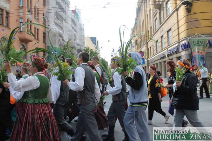 Svētdienas, 12. jūlija, naktī tika izdota pavēle Izglītības un zinātnes ministrijas pavēle, ka XI Latvijas skolu jaunatnes Dziesmu un Deju svētku gājiens nenotiks, bet no rīta atklājies, ka gājiens-pastaiga tomēr notiks brīvprātīgi. Kamēr Tukuma, Engures un Jaunpils kolektīvi gājienā oficiāli nepiedalījās (tāds bijia Tukuma novada domes lēmums), Kandavas novads gājienā devās. Tiesa, klusi un bez pazīšanās zīmēm gājienā devās arī Tukuma 2. pamatkolas dejotāji.