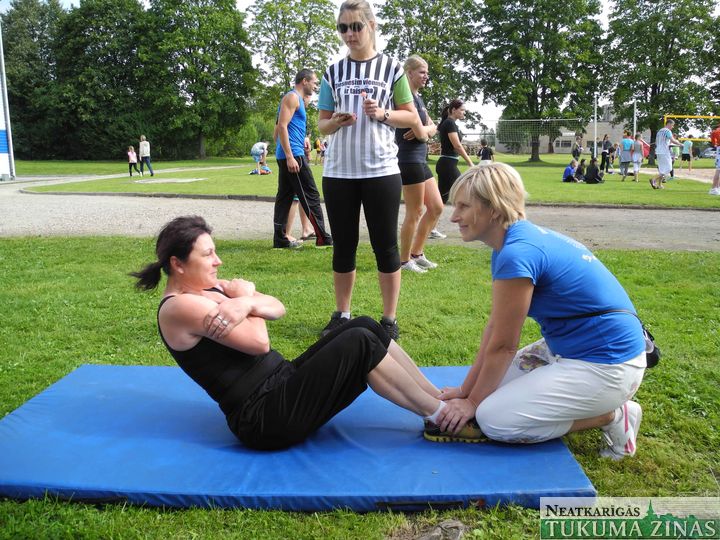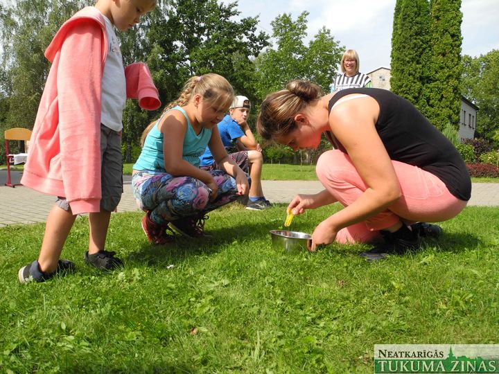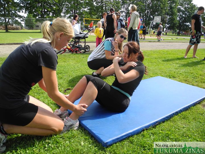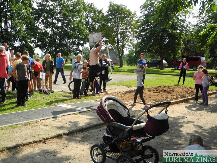 Sestdien Džūkstes pamatskolas sporta laukumā Džūkstes un Slampes pagastu ļaudis sporta svētkus svinēja. Sābri no kaimiņu pagastiem un novadiem arī bija klāt. Ap pārsimts darbīgu bērnu,viņu mammas, tēti, omes un opji sacentās dažādās sporta spēlēs un atraktīvās nodarbēs.