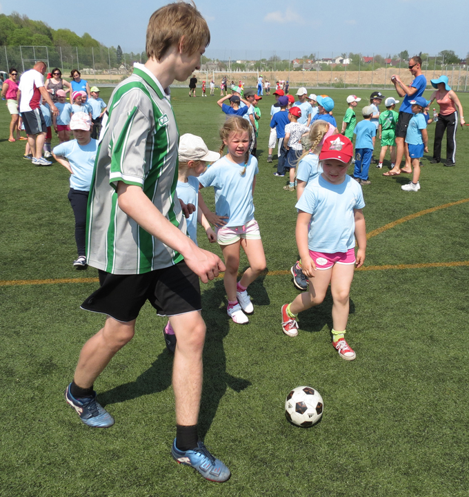 Piektdien, 17. aprīlī, Tukumā norisinājās Futbola diena, kuru organizēja FK “Tukums-2000/Tukuma sporta skola”. Visi mazie bērni piedalījās stafetēs un dažādās rotaļās, un, protams, spēlēja futbolu. Visās rotaļās mazajiem bērnudārzniekiem palīdzēja Tukuma futbola kluba jaunie futbolisti un treneri, bet dalībniekus uzmundrināja arī “Knifiņa” suņuki. Kad komandas bija veikušas visus uzdevumus, tad mazie dalībnieki tika pie diplomiem un gardām gardām dāvanām.