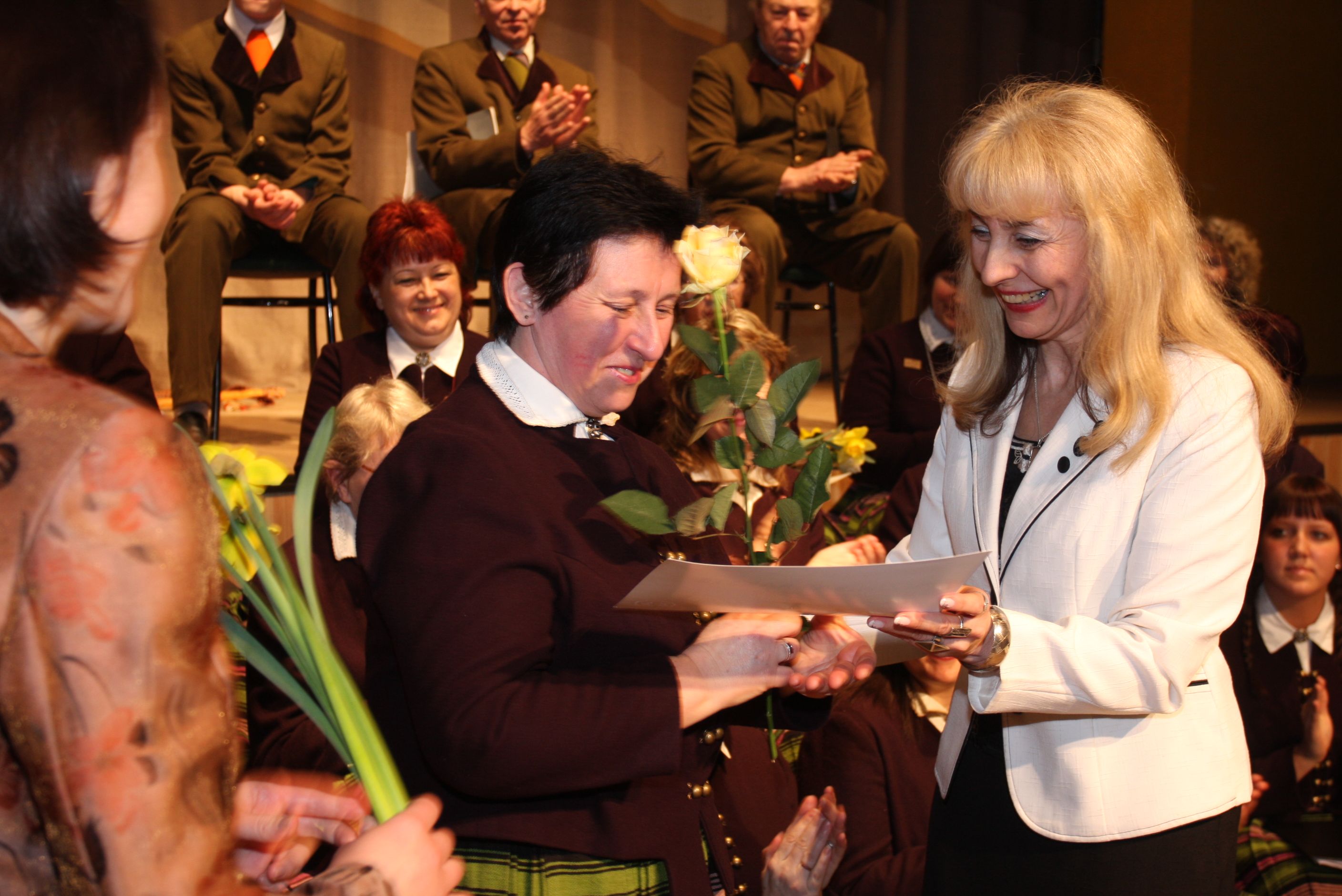 Vakar, 14. februārī Tukuma kultūras nama jauktā kora „Skandīne” ļaudis dziedāja tiem teju pārsimts balsu, kas kori pieskandējušas. Par prieku ļaudīm, tukumniekiem, draugiem, radiem, sābriem – tuviem un tāliem. Korī daudzi tukumnieki dzied jau trīs paaudzēs. Kori vada diriģente Gita Vanaga un kormeistars Ojārs Vītoliņš. Pateicības saņēma kora dziesmas ceļa iesācējas diriģentes Rasma Valdmane, Laimdota Silava un kormeistare Anda Vilka.