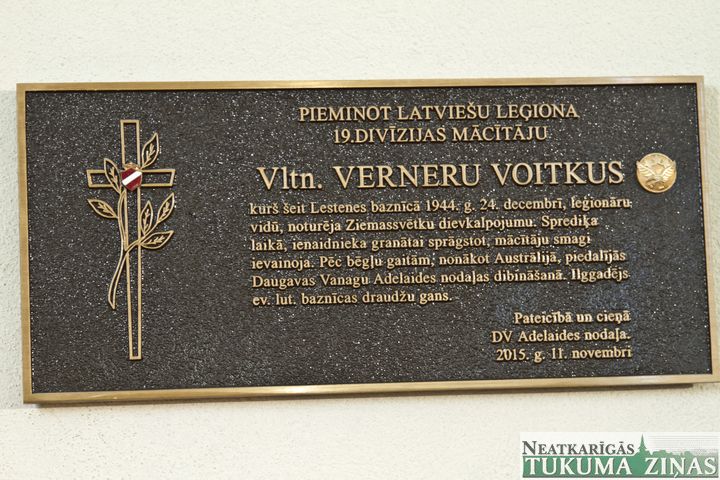 Otrdienas, 10. novembra, pēcpusdienā Lestenē notika Lāčplēšu dienai veltīts atceres pasākums. Tas sākās Lestenes baznīcā, kur mācītājs Jānis Saulīte un Nacionālo Bruņoto spēku kapelāns Raimonds Krasinskis iesvētīja Daugavas Vanagu Adelaides draudzes dāvināto piemiņas plāksni latviešu leģiona 19. divīzijas kapelānam Verneram Voikus (1911-1987).