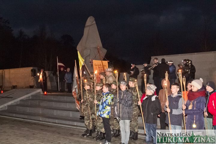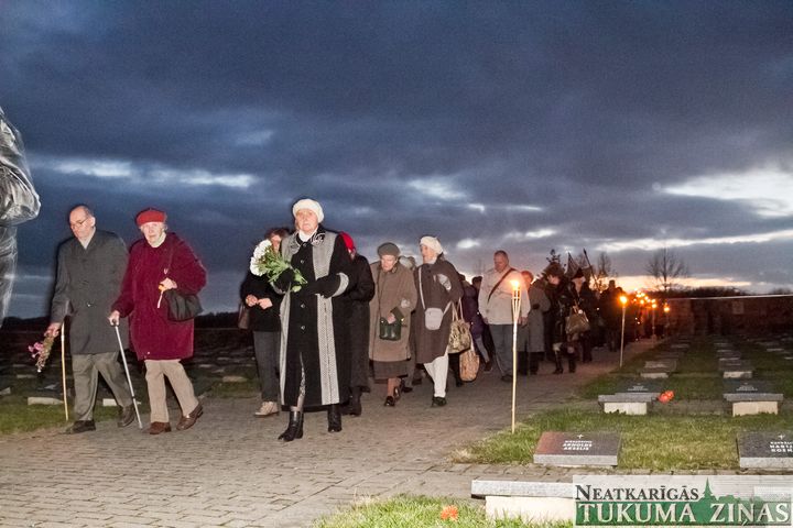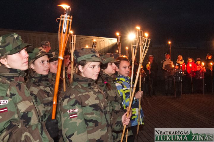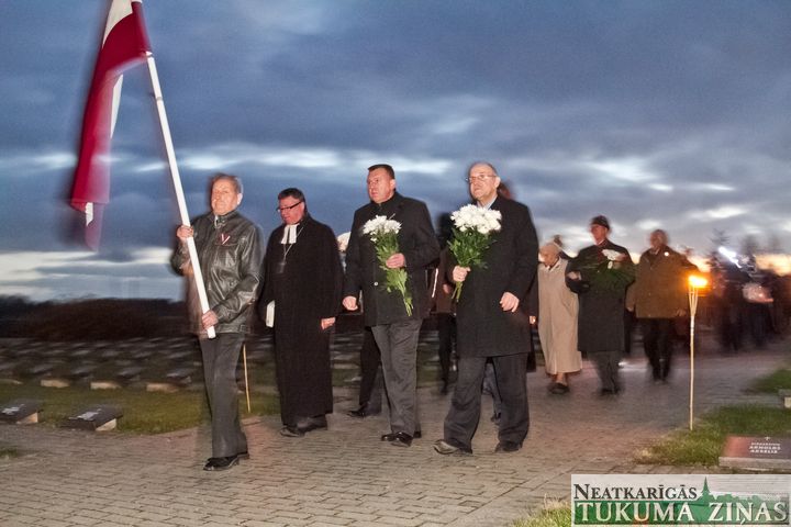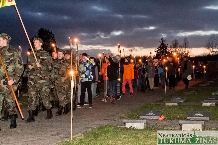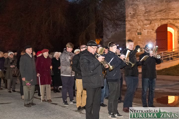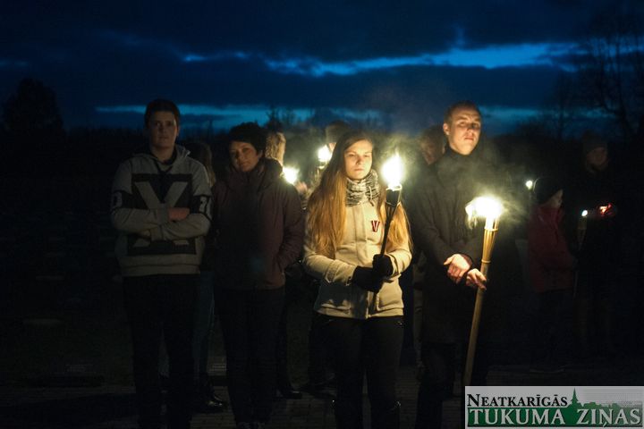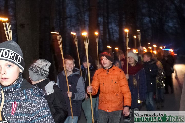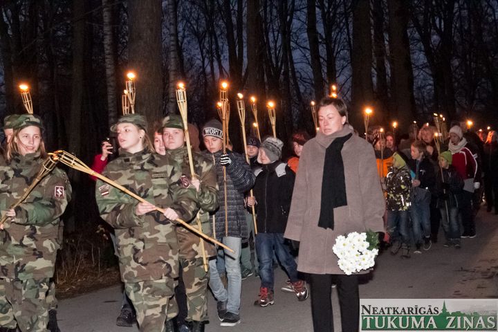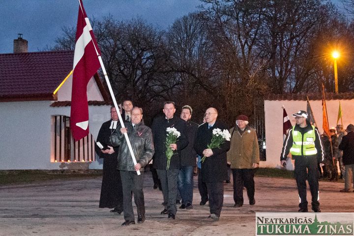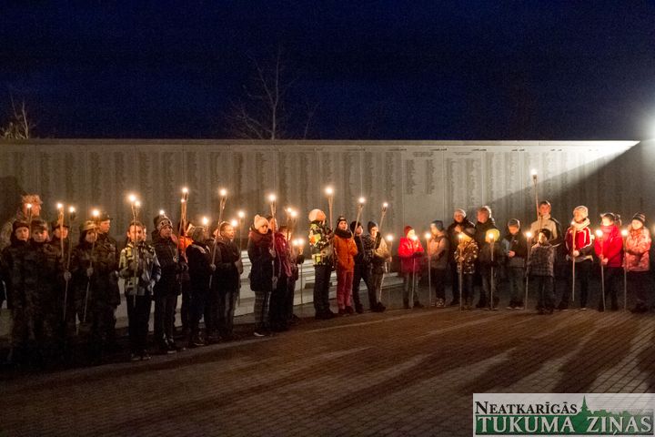 Tiklīdz iestājās tumsa, tautas nama pagalmā tika iedegtas lāpas un sarīkojuma dalībnieki devās gājienā no tautas nama līdz Brāļu kapiem. Lai solis raitāks, gājiena priekšgalā gāja Tukuma pūtēju orķestra mūziķi Māra Rozenberga vadībā.