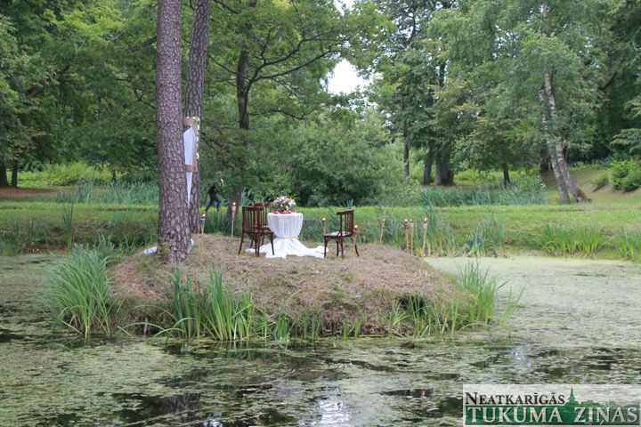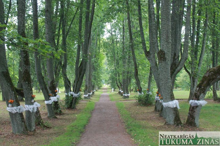 Par godu svētkiem parka galvenās ejas kokus rotāja balti “svārciņi” un kliņģerītes un plīvurpuķes burciņās, savukārt parka salu – improvizēta atpūtas vieta, kas atbilstoši teikai atgādināja par pirms vairāk nekā 300 gadiem dzīvojošo Zaļo dāmu, kas uz salas satikusies ar saviem pielūdzējiem.
