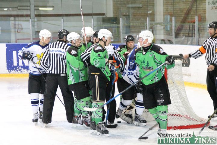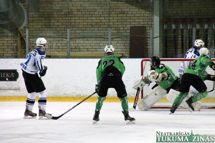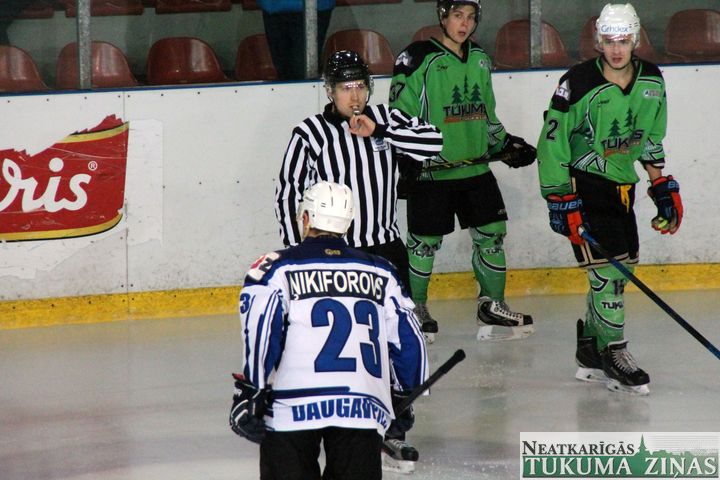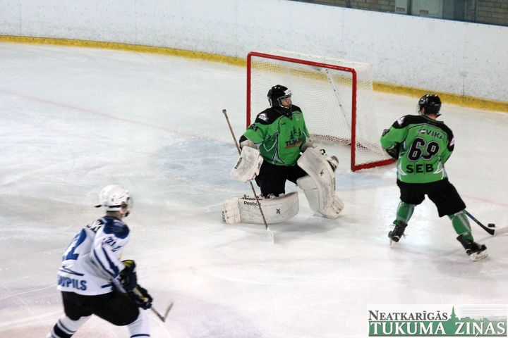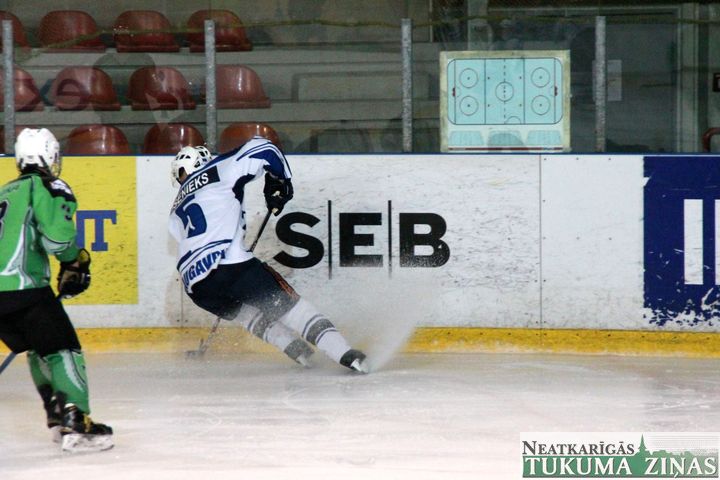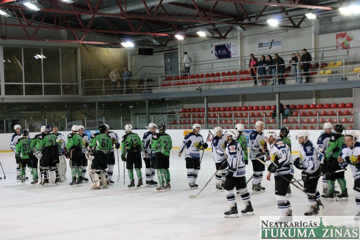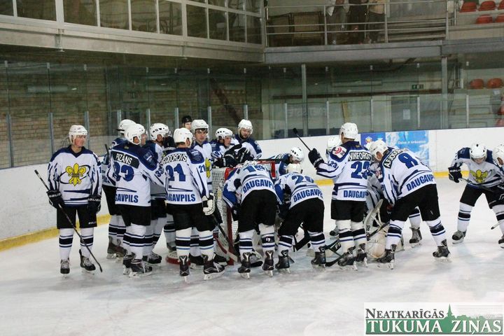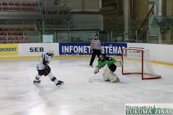 Latvijas hokeja čempionāta 1. līgas spēlē svētdien, 11. oktobrī, HK «Tukums/Stiga RM» pēcspēles metienos ar rezultātu 3:2 uzvarēja «RM Daugavpils/LDZ Cargo».