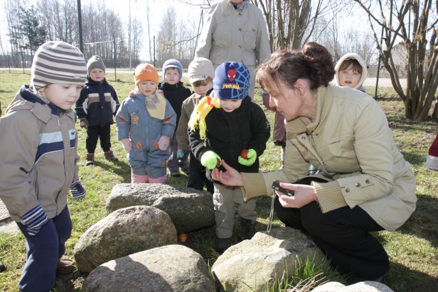 Šodien, 8. aprīlī, Smārdes pamatskolas pirmsskolas iestādē bērni svinēja Lieldienas. Svinēs arī svētdien, kad Lielā diena būs klāt. Svētku nekad nav par daudz. Zaķi bērnudārza pagalmā visneiedomākajās vietās bija paslēpuši olas. Bērni acis ņēma rokās un čadīgi visas atrada. Pēc tam tās ripināja. Jautrojās rotaļu laukumā un visi kopā ar zaķiem, audzinātājām un olām nofotografējās Ziedeju kalna spicē.