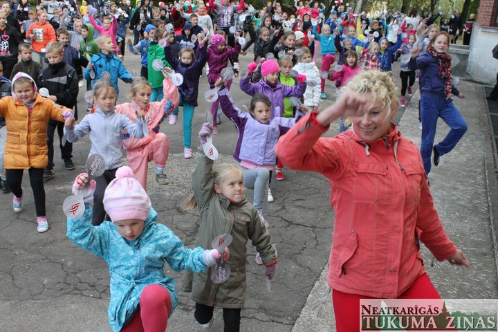 Piektdien, 27. septembrī, 10.00 Olimpiskās dienas ietvaros skolēni un bērndārznieki Tukumā vingroja “kolektīvi” trijās vietās. Aicināti iesaistīties un vingrot savās darba vietās bija arī pieaugušie.
