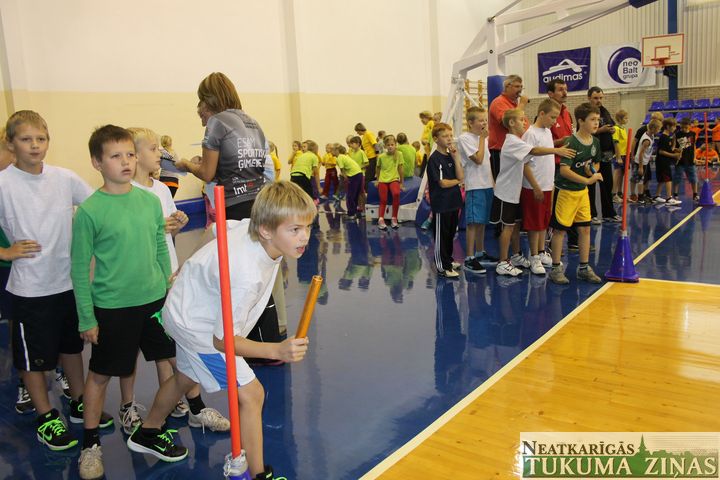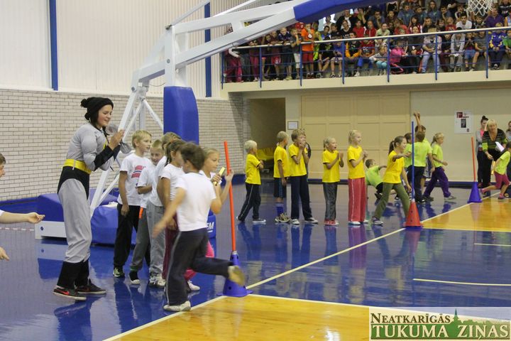 Kandavas novada skolas uz rīta vingrošanu, ko vadīja olimpiskais vēstnesis Jānis Ozols, pulcējās Kandavas sporta hallē. Pēc iesildīšanās un oficiālās stafetes pievarēšanas, kurā šogad naskāki izrādījās Kandavas K. Mīlenbaha vidusskolas skrējēji, katrai skolai un klasei bija iespēja sevi apliecināt arī citās disciplīnās. Tā halles zālē tika noskaidroti labākie basketbola sodiņu metēji un pendeļu spērēji, kā arī klases vienotību vajadzēja pierādīt ritmiskā šļūkšanā. Savukārt ģērbtuvēs varēja iemēģināt roku šautriņmešanā, foajē – izmērīt rokas spiediena spēku un atslodzei – izspēlēt kādu šaha vai dambretes partiju. Visbeidzot dažādi pārbaudījumi bērnus sagaidīja arī K. Mīlenbaha vidusskolā. Gaiteņos nācās mest smilšu maisiņus, uz ātrumu iesist naglu vai izveidot “dēļu laipiņu“, zālē – koncentrēties uz cipariņu meklēšanu un lecamauklu, kas, neaizķeroties, bija jāpārlec visai klasei vienlaikus.
