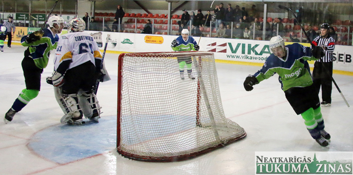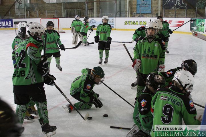 Latvijas hokeja čempionāta 1. līgas spēlē svētdien, 11. oktobrī, HK «Tukums/Stiga RM» pēcspēles metienos ar rezultātu
