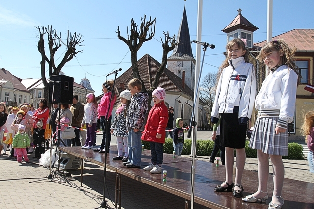 Sestdienas, 16. jūlija vakarā svētku dalībnieki, viesi un tukumnieki pulcējās gājienam uz Durbes estrādi, kur