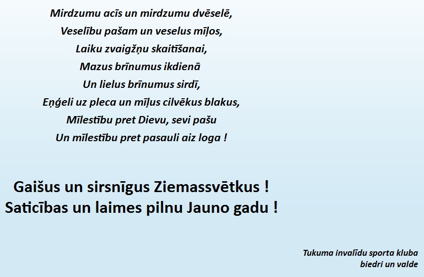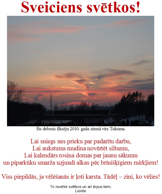Priecīgus svētkus vēlot! ntz.lv 23.12.2012 0 «Neatkarīgo Tukuma Ziņu» e-pastkastītē saņemtie apsveikumi! Dalāmies priekā un vēlējumos ar Jums! Dalies sociālajos tīklos: Click to share on Facebook (Opens in new window) Facebook Click to share on X (Opens in new window) X Nav vēl komentāru. Pievieno komentāru Atcelt atbildi Saglabājiet manu vārdu, e-pasta adresi un vietni šajā pārlūkprogrammā nākamajai reizei, kad vēlēšos pievienot komentāru. Vārds Komentārs * Pievienot komentāru