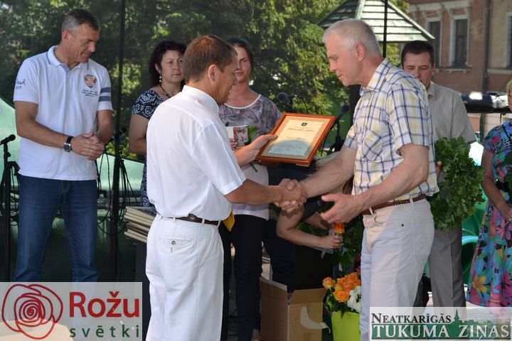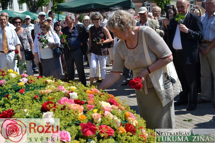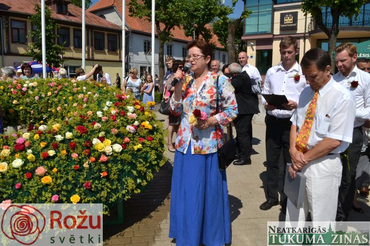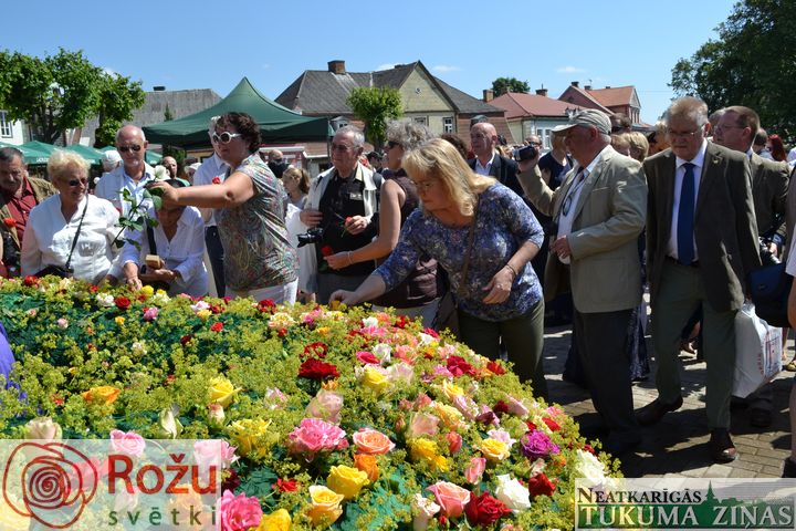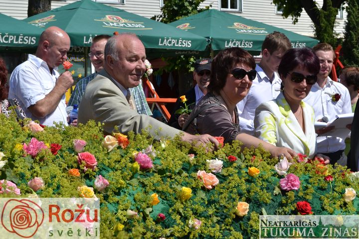 Sestdiena sākusies ar rožu vainaga un izstādes atklāšanu.  Vainagu oficiāli atklāja dzejniece Māra Zālīte un novada domes priekšsēdētājs Juris Šulcs. Tukuma muzejs uz izstādes «No dubļiem līdz rozēm» atklāšanu bija aicinājis bijušā Tukuma rajona autosportista veterānus. Izstāde Pils tornī apskatāma šodien līdz 22.00. Svētki turpinās.