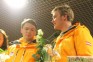 Vo hokejisti malači!Kārīgi sagaida Tukumniekus no Sočiem, i karogs līdzi, i smaidīgi, kaut arī tas viss notika vēlu naktī.