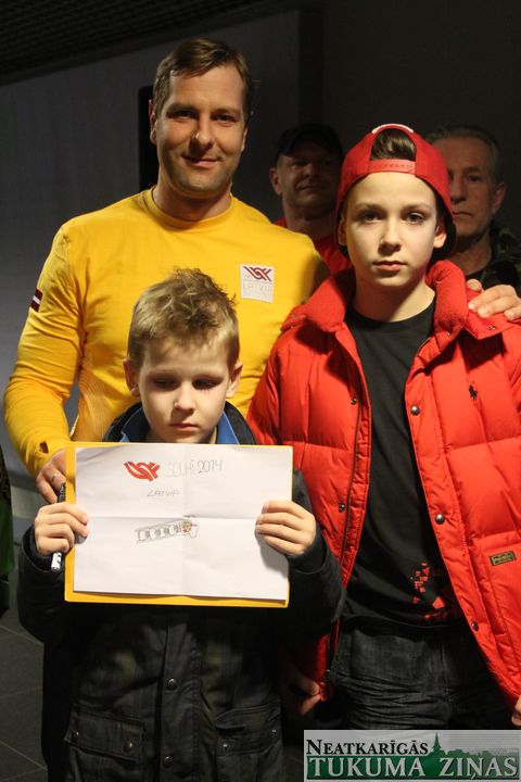 Naktī no pirmdienas uz otrdienu jau otro reizi šo olimpisko spēļu laikā lidmašīnu reisu no Sočiem devās sagaidīt arī Tukuma novada delegācija – pašvaldības un sporta klubu pārstāvji. Viņu vidū aktīvākie Tukuma hokeja kluba jaunieši. Kā gan citādi, ja bobsleja sudraba medaļnieku gods pienākas arī viņu bijušajam trenerim, tukumniekam Jānim Ozolam. Bet Jāņa vissirsnīgāko sagaidītāju pulkā, protams, viņa ģimene.