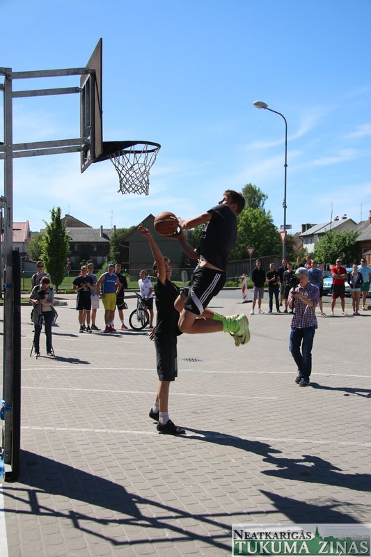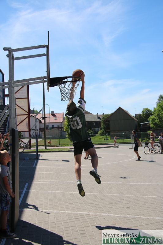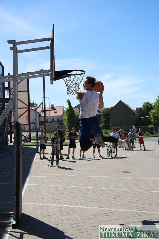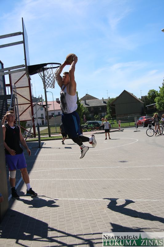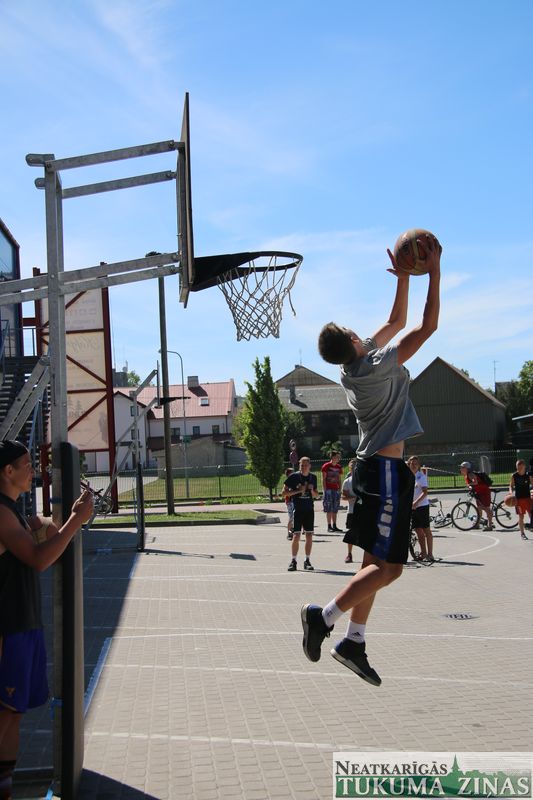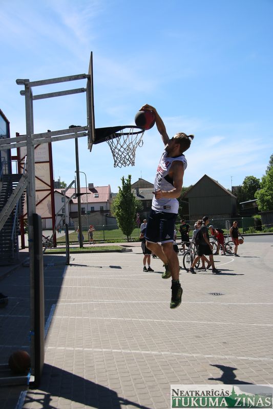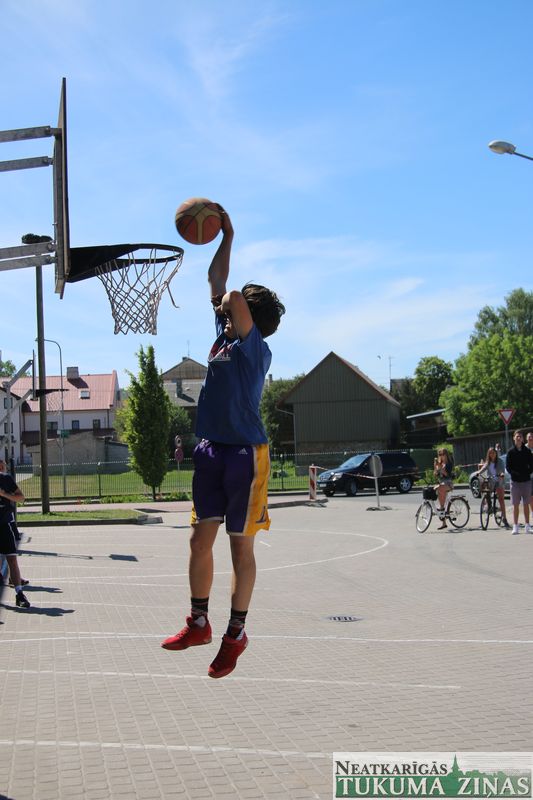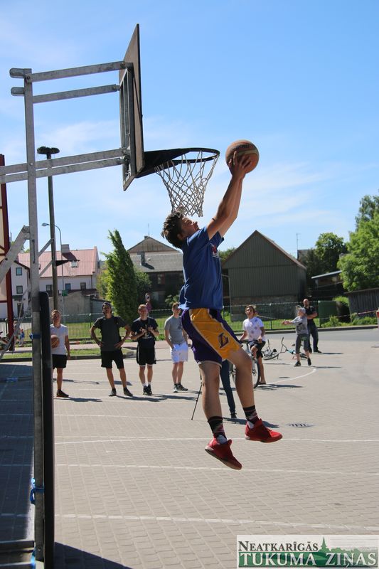 Šodien, 4. jūnijā, visas dienas garumā Tukumā pie ledus halles norisinājās “Street Basket 3×3” spēles, kā arī notika basketbola bumbas triecieni grozā no augšas jeb slam dunk konkursa “Dunk contest”, kurā piedalījās puiši no daudzām komandām. Noslēgumā labākie tika arī pie Tukuma Jauniešu centra sarūpētajām dāvanām.