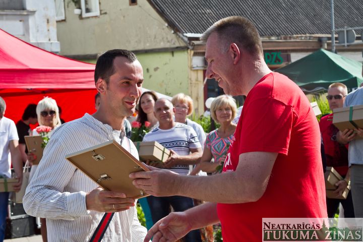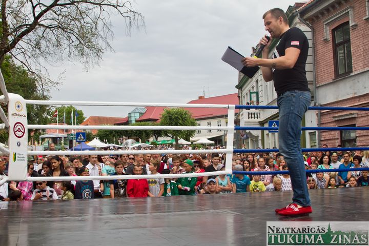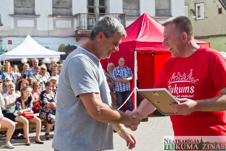 Lielā Tukuma pilsētas svētku svinēšanas diena bija sestdien, kad ne tikai mākslu un kultūru , bet arī vēderpriekus varēja baudīt vai katrā pilsētas stūrītī. Pilsētas muzejā atklāja jaunu izstādi, uz skatuves Brīvības laukumā kāpa gan pašmāju mākslinieki, gan vieskolektīvi no sadraudzības pilsētām. Sakoptāko īpašumu saimniekus sumināja par ieguldījumu Tukuma smukumā, bet asāku izjūtu cienītājus gaidīja īstu vīru cīņas, ko organizēja klubs «Tukuma brāļi». Vakarā pilsētnieki un viesi devās uz Durbes estrādi, bet par to nākošajā reportāžā…