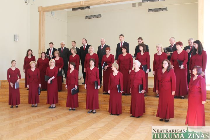 7. maijā Tukuma Raiņa ģimnāzijas zālē Tukuma koru apriņķa skatē piedalījās 15 kori no Tukuma, Kandavas, Jaunpils novada, Nīgrandes, Novadniekiem un Jelgavas. Viņus vērtēja Dziesmu svētku virsdiriģents un Tukuma koru apriņķa virsvadītājs Romāns Vanags, Dziesmu svētku mākslinieciskais vadītājs un Cēsu koru apriņķa virsvadītājs Mārtiņš Klišāns un komponists Rihards Dubra.