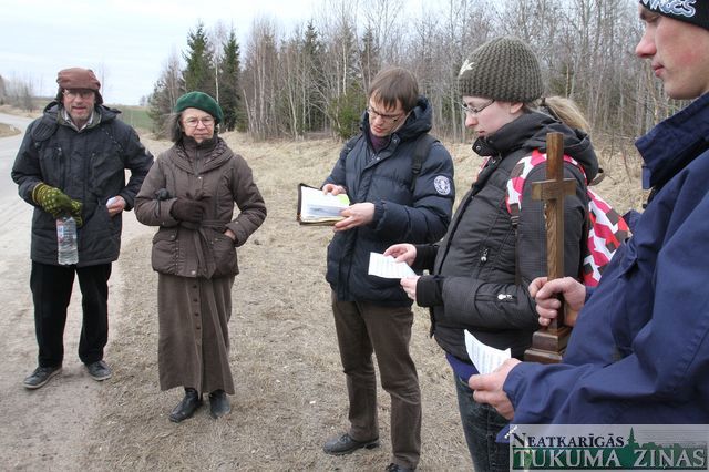 Krusta ceļu šodien, Lielajā Piektdienā, Jēzus Kristus krustā sišanas dienā izgāja Tukuma Evanģēliski luteriskās draudzes ļaudis mācītāja Mārča Zeiferta rosināti. Krusta ceļa gājienā tukumnieki iet otro gadu pēc kārtas. Šoreiz viņiem piebiedrojās ticības māsas un brāļi no Engures draudzes. Piecu stundu laikā – no 13.00 līdz 18.00 – 21 ticīgais nogāja 20 kilometru pa Tukuma apkaimi. 15 pieturās lūdzās par Kristus ciešanām, paši savus un mūsu visu grēkus nožēloja.