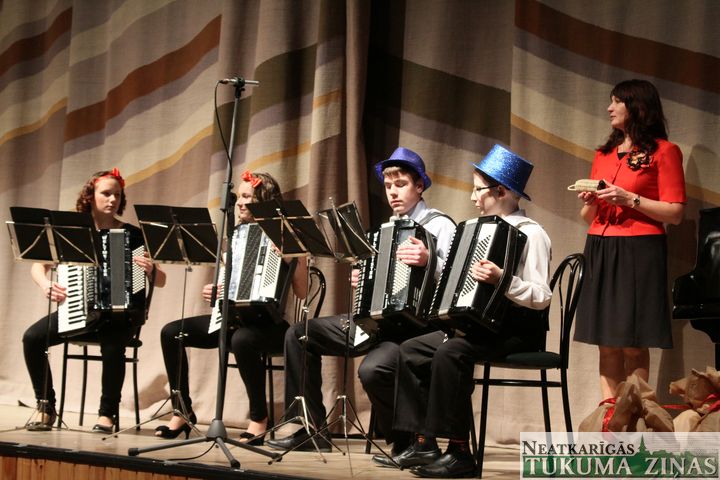 Pirmdien, 16. decembrī, Tukuma kultūras namā izskanēja gadskārtējais Tukuma mūzikas skolas gada nogales koncerts. Galvenās rīkotājas – mūzikas skolas direktore Ligita Zemniece, mācību daļas vadītāja Ināra Ārgale un Tukuma novada domes kultūras metodiķe, bērnu teātra «Knifiņš» režisore Rudīte Poča. Koncertā «Ziemassvētku pārsteigums» uzstājās ap diviem simtiem jauno mūziķu un dievišķās skaņas veltīja zālē sēdošajiem.