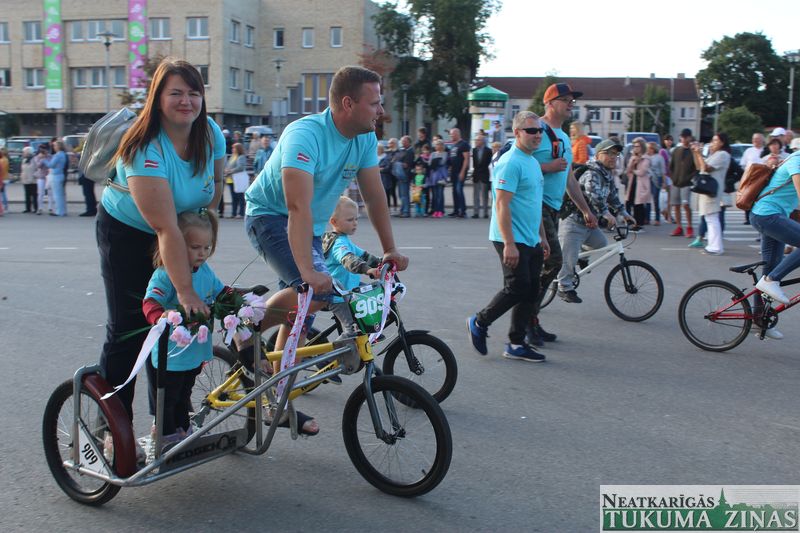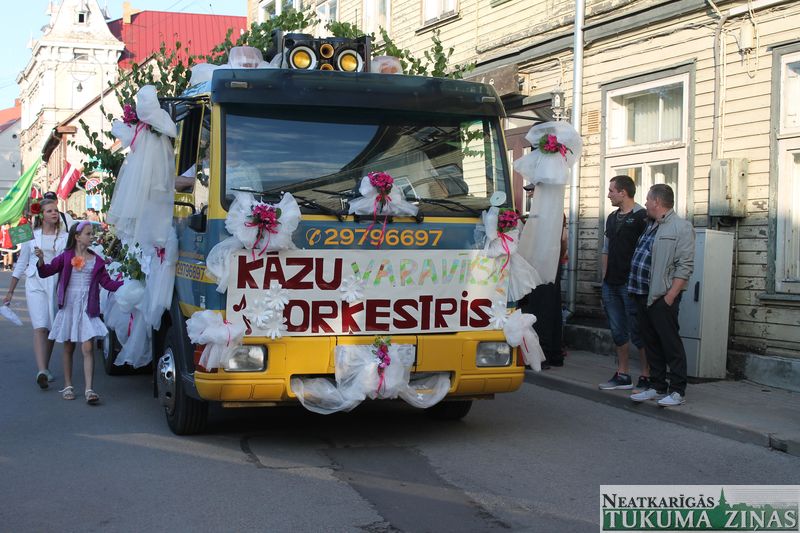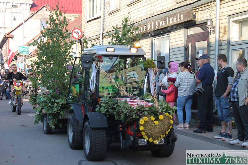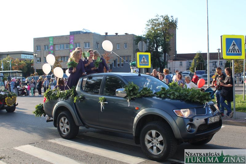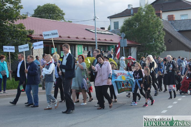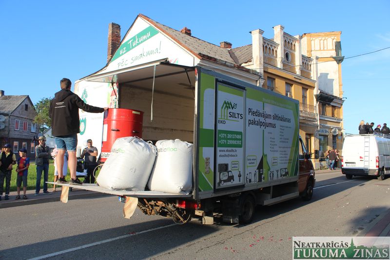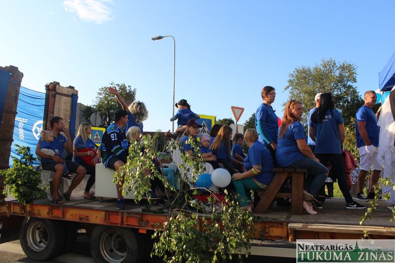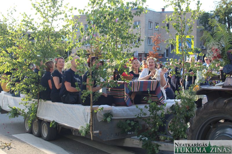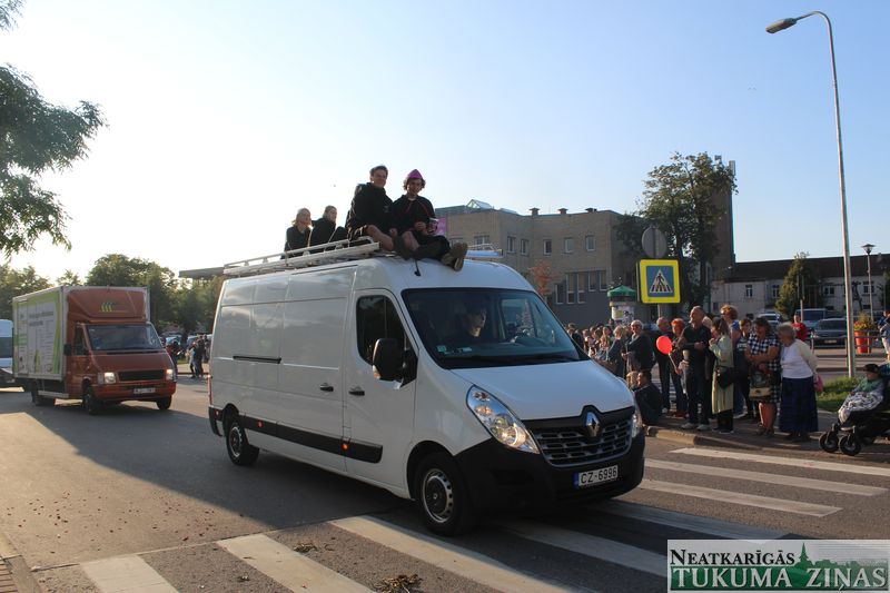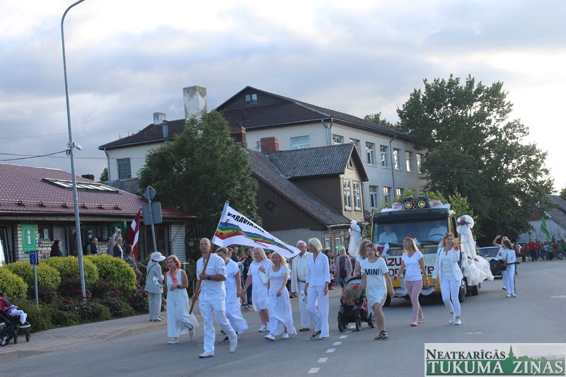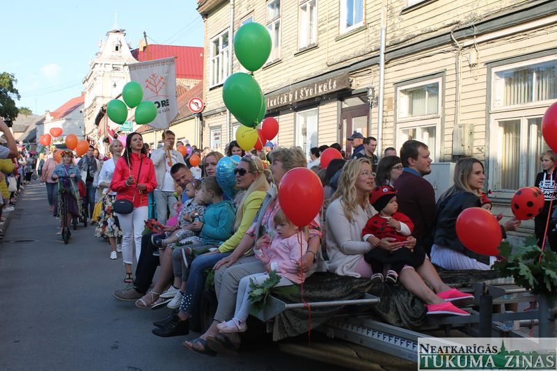 Tukuma novada svētku gājien 13. jūlijā jau otro gadu stājās Tirgus laukumā un Tidaholmas ielā, lai izrādītos pilsētas centrā. Šoreiz vārds “izrādīšanās” tiešām atbilda realitātei, jo šis esot bijis vēsturē garākais gājiens ar kopskaitā 51 dalībnieku. Un tā kā bija izskanējis aicinājums izmantot transportlīdzekli, dalībnieki bija sasēduši piekabēs, platformās, izmantojuši ratus un velosipēdus, skaļus un dūmojošus mocīšus, kā arī guva laimi, paplosot autiņu riepas. Troksnis, dūmi, neparasts noformējums, kā arī milzum daudz cilvēku – kā dalībniekos, tā skatītājos – lūk, ar ko raksturīgs šī gada gājiens.