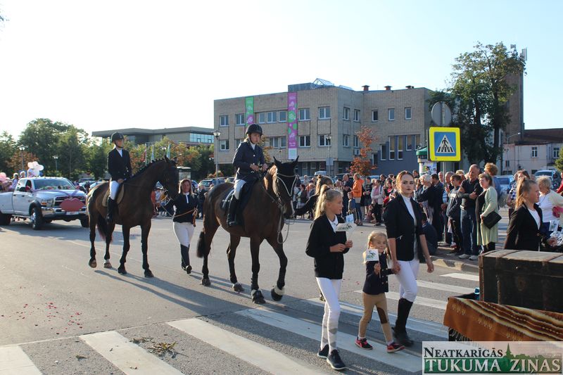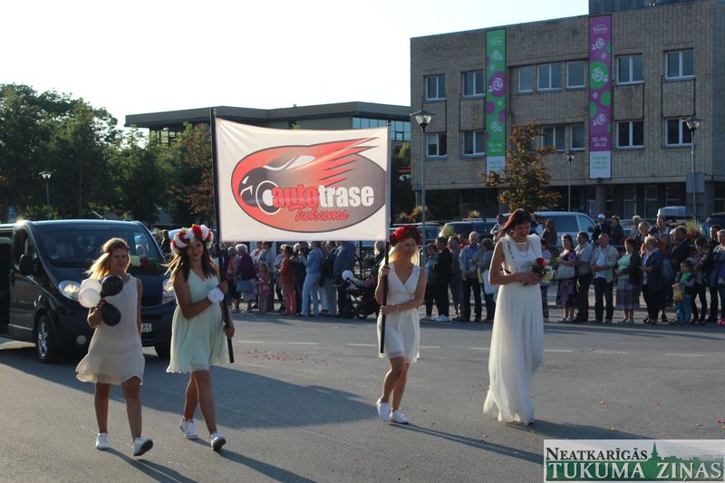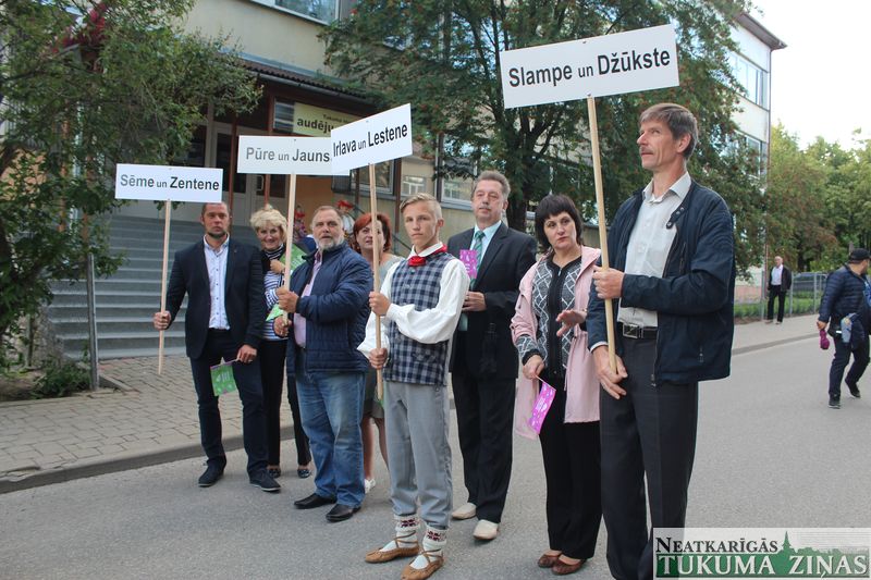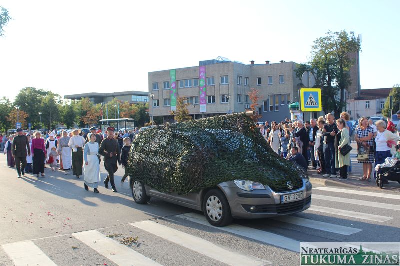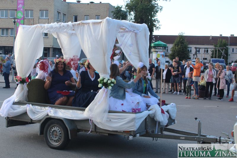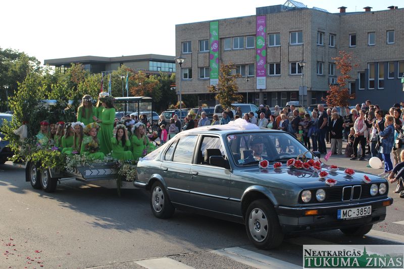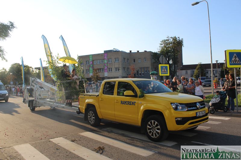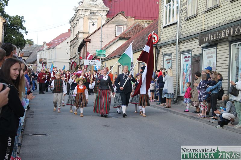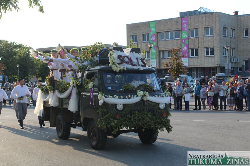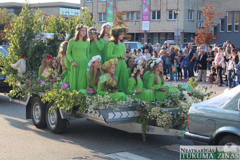 Tukuma novada svētku gājien 13. jūlijā jau otro gadu stājās Tirgus laukumā un Tidaholmas ielā, lai izrādītos pilsētas centrā. Šoreiz vārds “izrādīšanās” tiešām atbilda realitātei, jo šis esot bijis vēsturē garākais gājiens ar kopskaitā 51 dalībnieku. Un tā kā bija izskanējis aicinājums izmantot transportlīdzekli, dalībnieki bija sasēduši piekabēs, platformās, izmantojuši ratus un velosipēdus, skaļus un dūmojošus mocīšus, kā arī guva laimi, paplosot autiņu riepas. Troksnis, dūmi, neparasts noformējums, kā arī milzum daudz cilvēku – kā dalībniekos, tā skatītājos – lūk, ar ko raksturīgs šī gada gājiens.