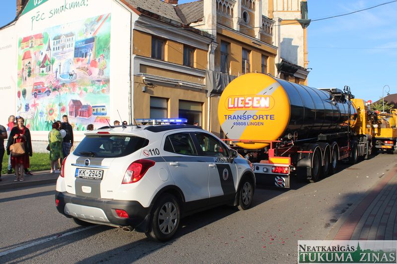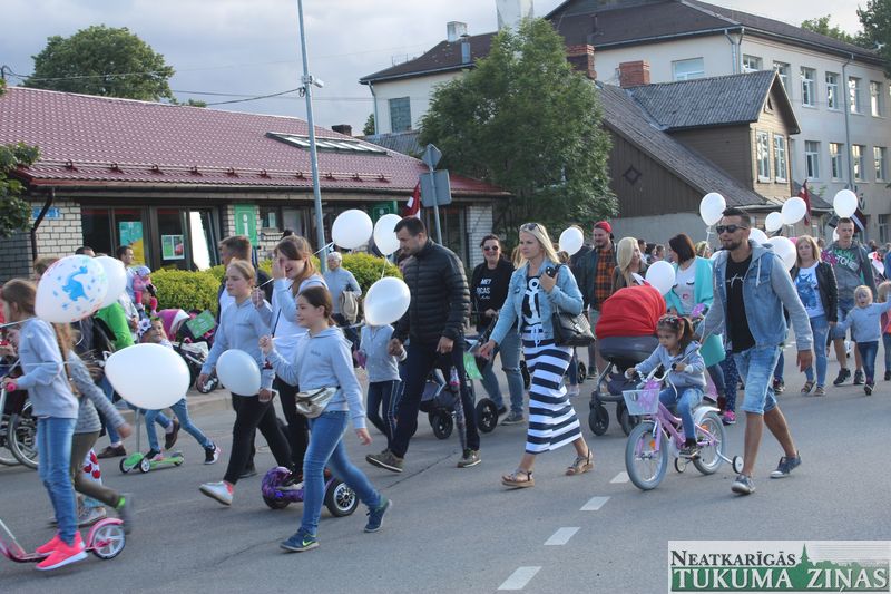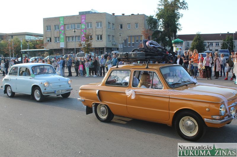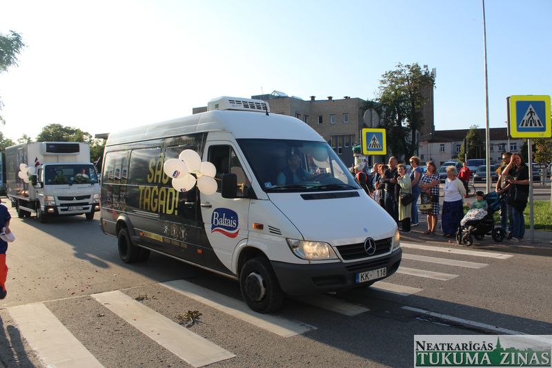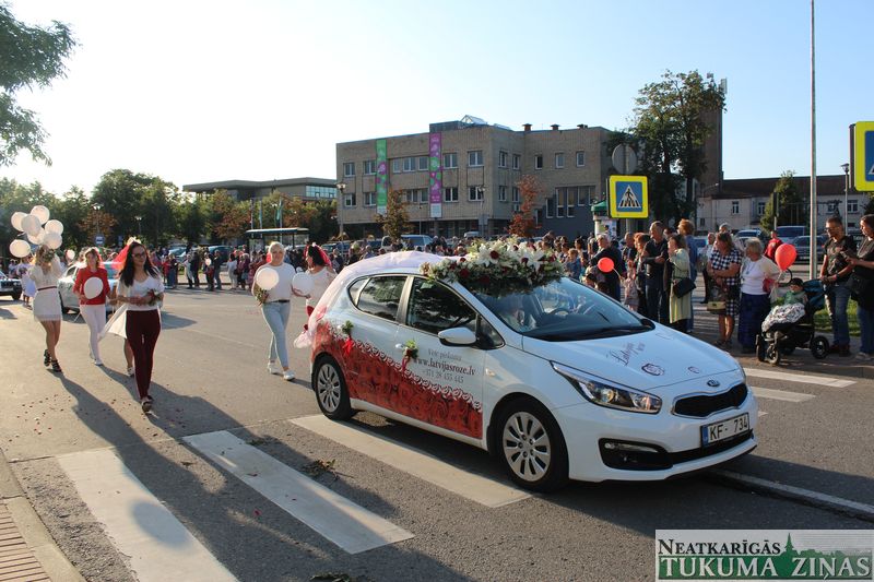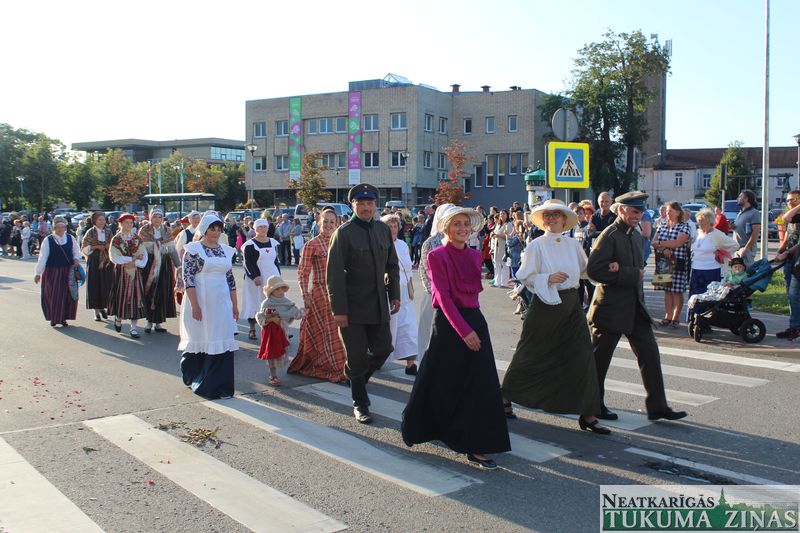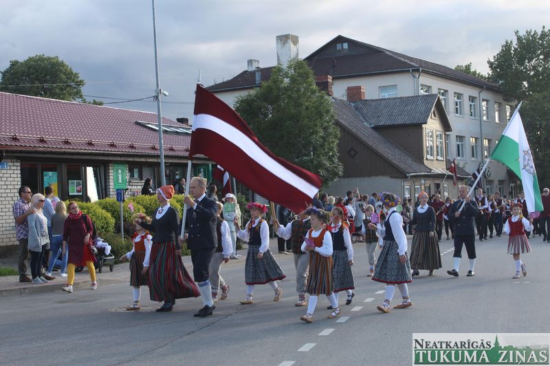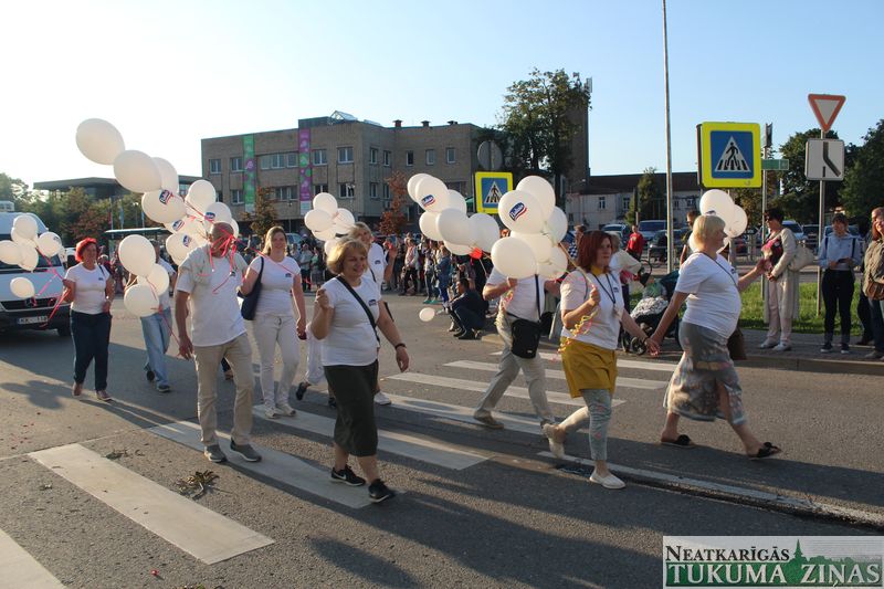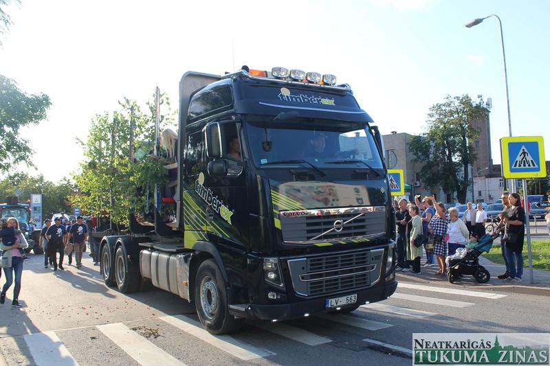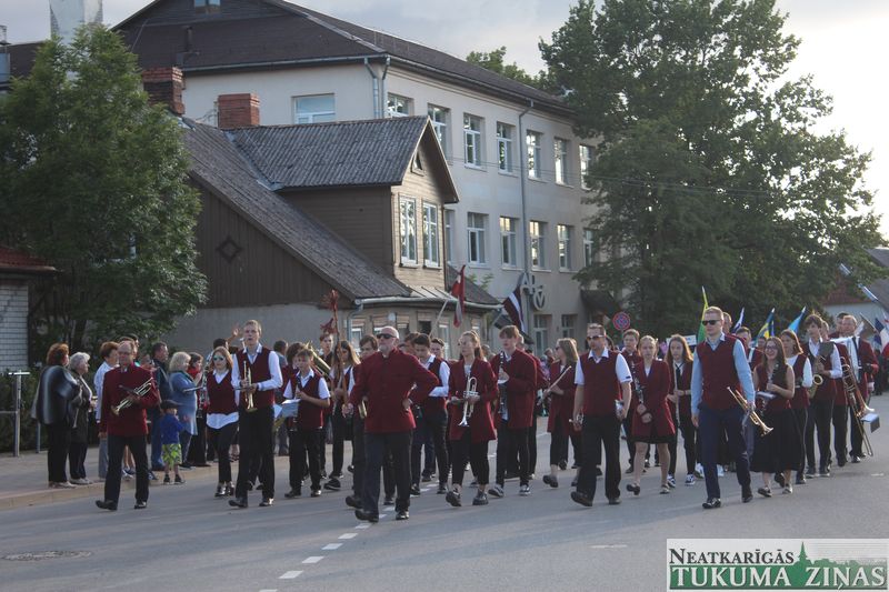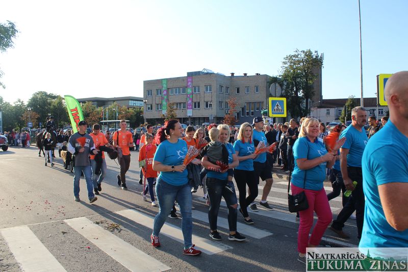 Tukuma novada svētku gājien 13. jūlijā jau otro gadu stājās Tirgus laukumā un Tidaholmas ielā, lai izrādītos pilsētas centrā. Šoreiz vārds “izrādīšanās” tiešām atbilda realitātei, jo šis esot bijis vēsturē garākais gājiens ar kopskaitā 51 dalībnieku. Un tā kā bija izskanējis aicinājums izmantot transportlīdzekli, dalībnieki bija sasēduši piekabēs, platformās, izmantojuši ratus un velosipēdus, skaļus un dūmojošus mocīšus, kā arī guva laimi, paplosot autiņu riepas. Troksnis, dūmi, neparasts noformējums, kā arī milzum daudz cilvēku – kā dalībniekos, tā skatītājos – lūk, ar ko raksturīgs šī gada gājiens.
