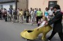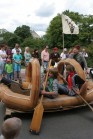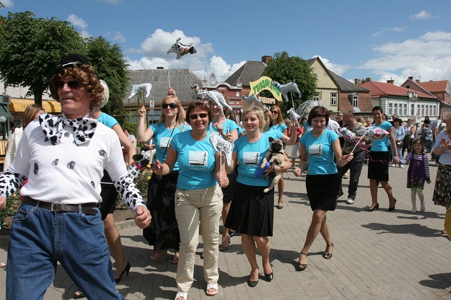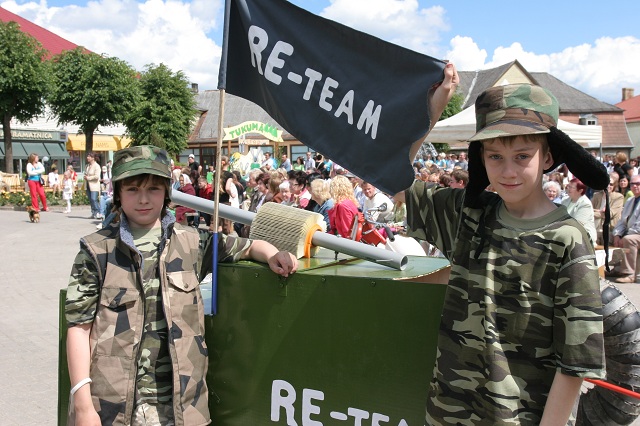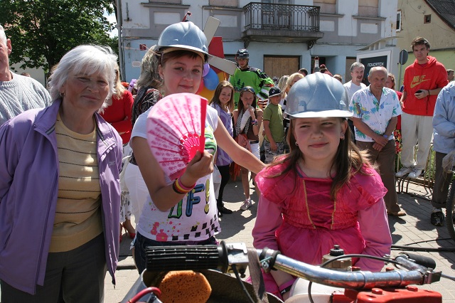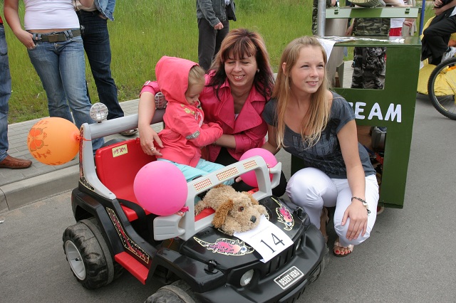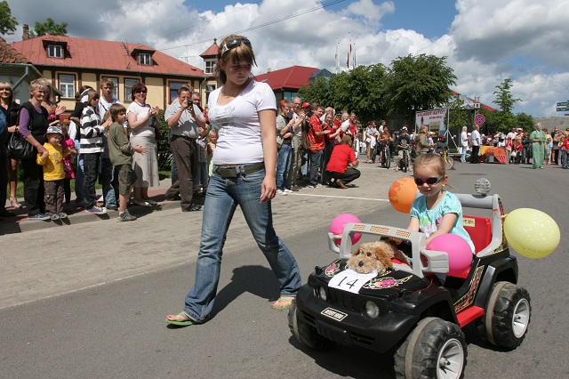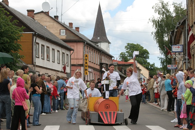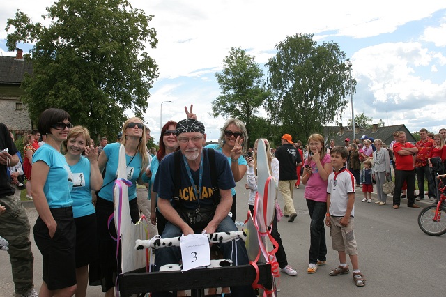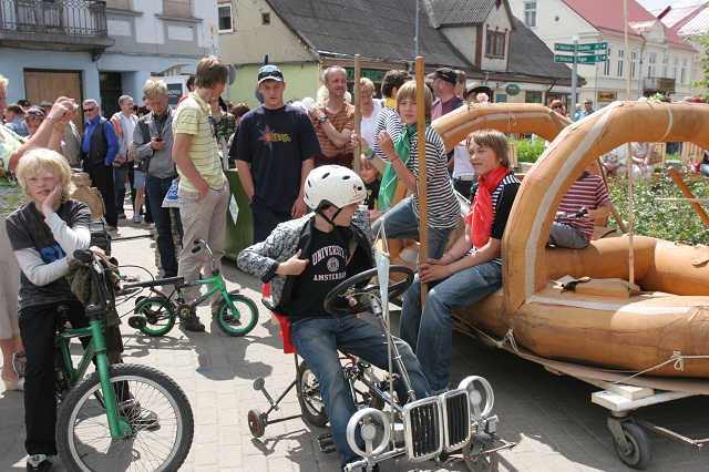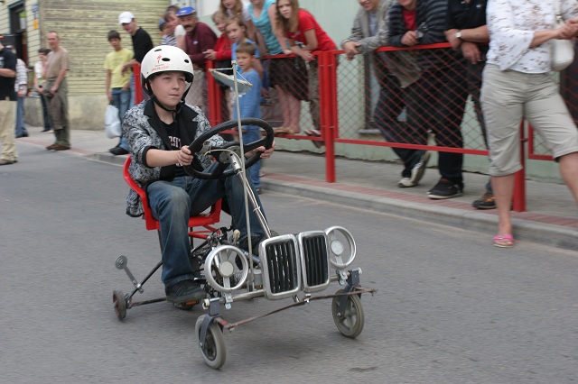 14 dažādi un arī jancīgi braucamrīki, “traku” ļaužu radīti, Tukuma pilsētas svētku izskaņā, traucās pa Lielo ielu no Brīvības laukuma līdz pat Pauzera ielai.