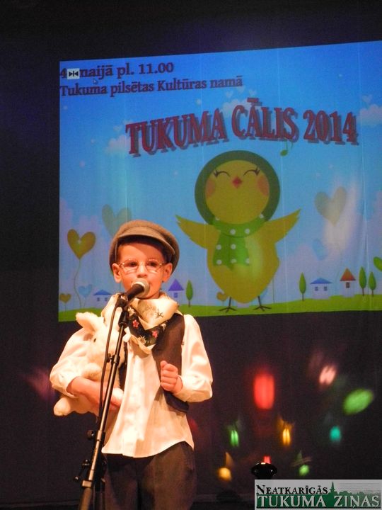 Šodien, 4. maijā Tukuma kultūras namā notika mazo vokālistu konkurss “Cālis 2014”. Konkursā piedalījās 17 jauni skanīgu balsu īpašnieki. Mazo solistu dziedāto dziesmu skanīgumu vērtēja žūrijas komisija: Agnese Vītoliņa, Agnese Meņģele un Rita Lazare. Katrs dalībnieks kādā nominācijā bija labākais. Cāļa 2014 godu nopelnīja Annija Jēgere.