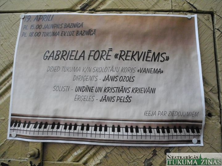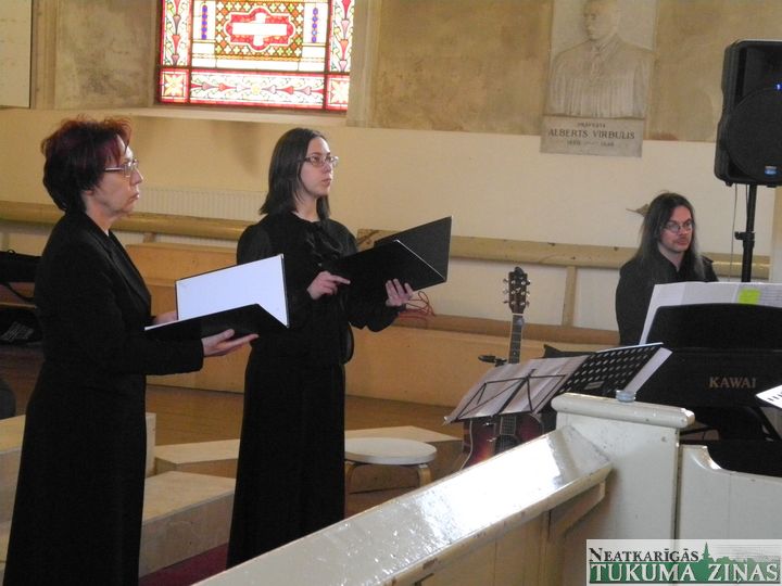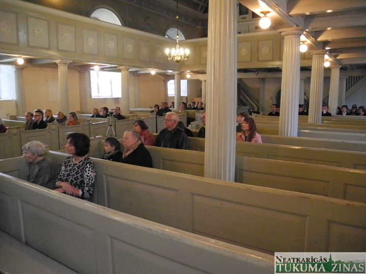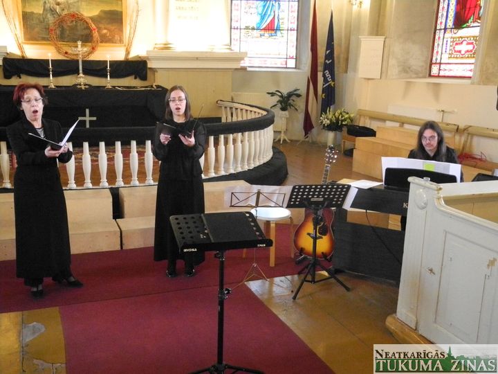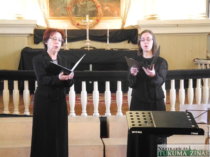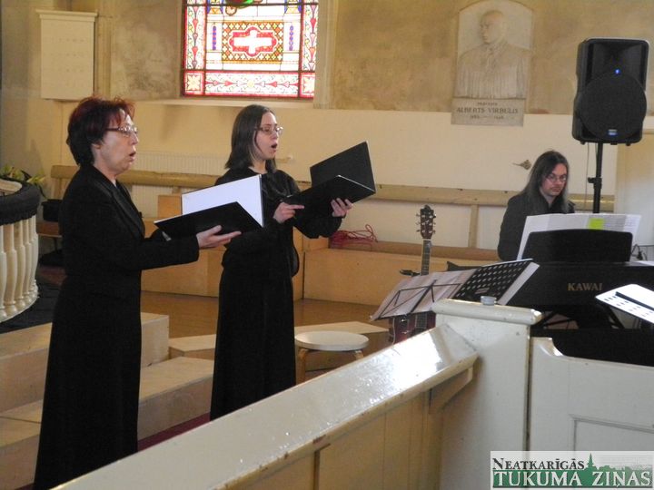 Sestdien, 19. aprīlī, Tukuma kultūras nama skolotāju koris «Vanema» dievnamā atskaņoja Gabriela Forē rekviēmu un solo dziedājumus Zāģeru ģimenes izpildījumā. Dieva vārdus teica draudzes mācītājs Mārcis Zeiferts, kurš pats arī korī dziedāja.