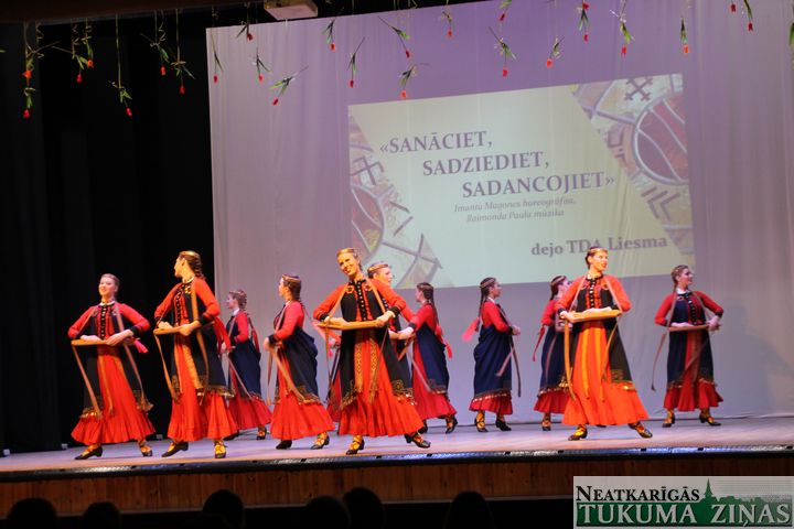 Šai dienā īpašajā, lai visi ziedi tikai jums, lai vienmēr acis spīdētu un smaids no lūpām nepazūd,” tā 5. martā Tukuma pilsētas kultūras namā sievietēm novēlēja VPDK «Vidums» vadītājs Intars Kleinhofs. Tautas deju kolektīvu koncertā «Sieviete – Dieviete» uzstājās kolektīvi no Rīgas, Jelgavas, Berģiem, Grobiņas un Tukuma.