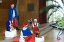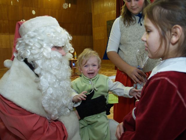 27. decembrī ap simtu pašu mazāko pagasta iedzīvotāju, – tos, kuri neapmeklē ne skolu, ne bērnudārzu, pie sevis Slampes kultūras pilī aicināja Ziemassvētku vecītis. Viņam, dāvanas dalīt un dzejolīšus klausīties, palīdzēja skolas Rūķi. Ar dziesmiņām priecēja meiteņu ansamblis un skolotāja Anita Geidāne.