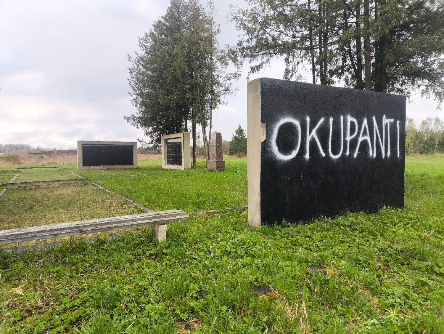 Kā informē Slampes pagasta pārvalde, šajā nedēļā kāds apzīmējis pieminekli padomju karavīru kapos Spirgū.
